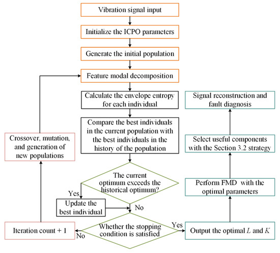 The flowchart of ICPO-FMD is shown in Figure 2, and the specific steps are as follows:
