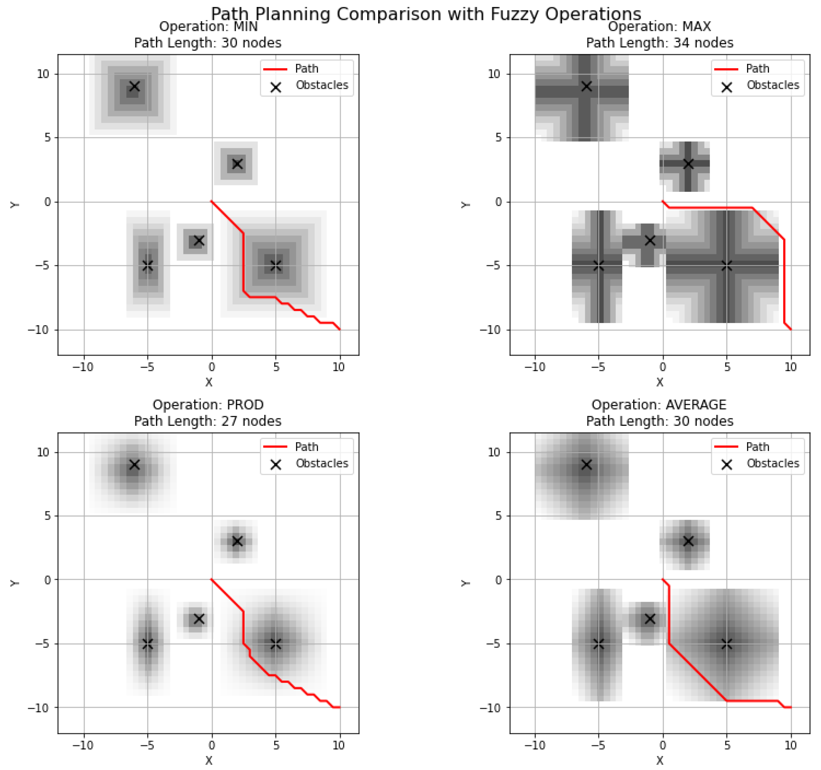 | Main Application Focus | Real-time control, local obstacle avoidance, trajectory generation [21,22,25,27]. | Medical diagnosis, image processing, data mining, and knowledge representation [8,9,10,16]. | Empirical study on aggregation operator impact for global path planning efficiency |