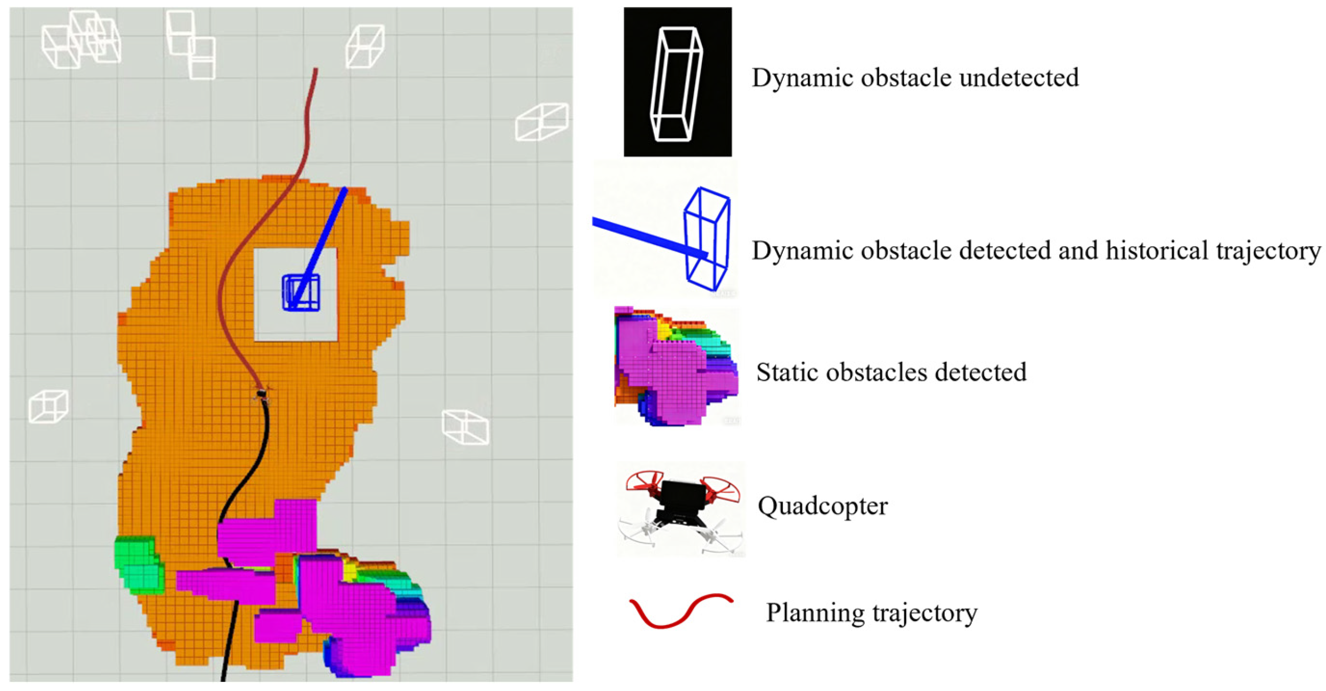 - Zhou, X.; Wang, Z.; Ye, H.; Xu, C.; Gao, F. Ego-Planner: An Esdf-Free Gradient-Based Local Planner for Quadrotors. IEEE Robot. Autom. Lett. 2020, 6, 478–485. [Google Scholar] [CrossRef]