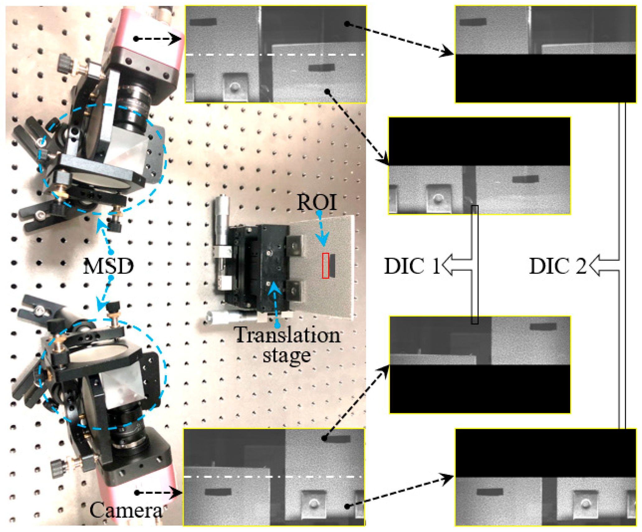 In order to verify the impact of improved resolution on accuracy, we compared the experimental results with those obtained from the DIC system without the MSD. In our previous study [