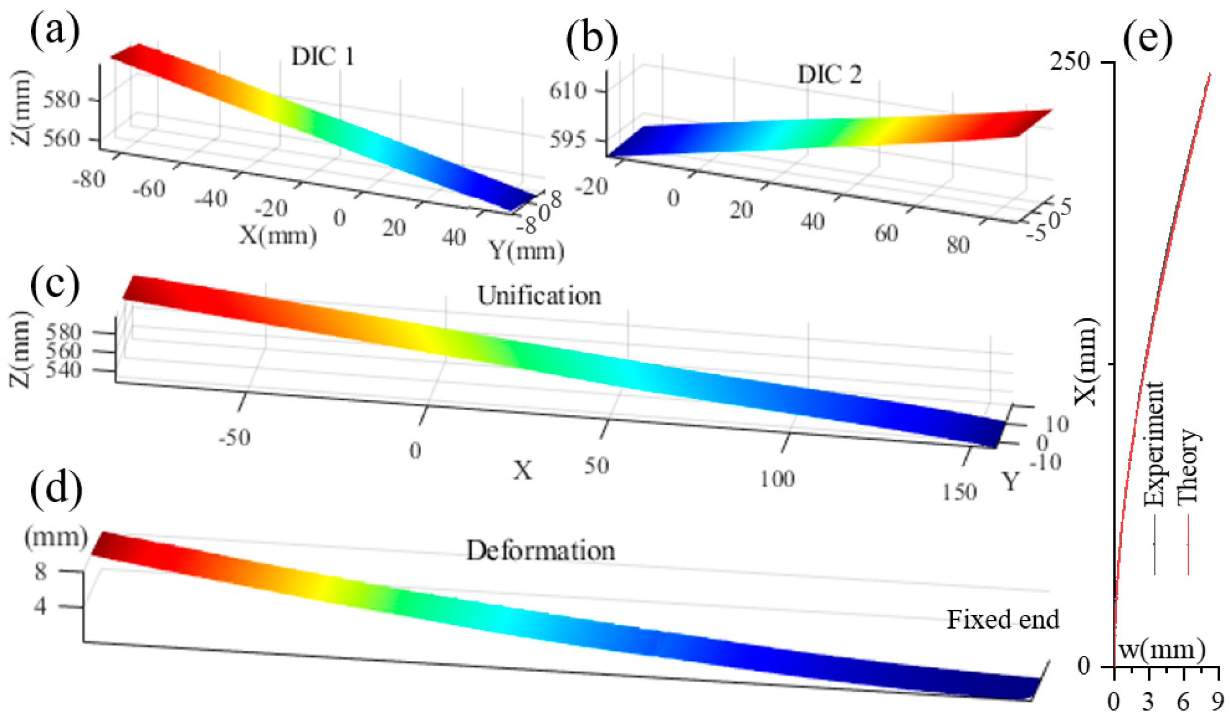 Figure 8. Comparison of the experimental and theoretical results clearly demonstrates that the multi-camera DIC system is capable of accurately reconstructing the complete 3D morphology and capturing full-field deformation with high resolution utilization rate.