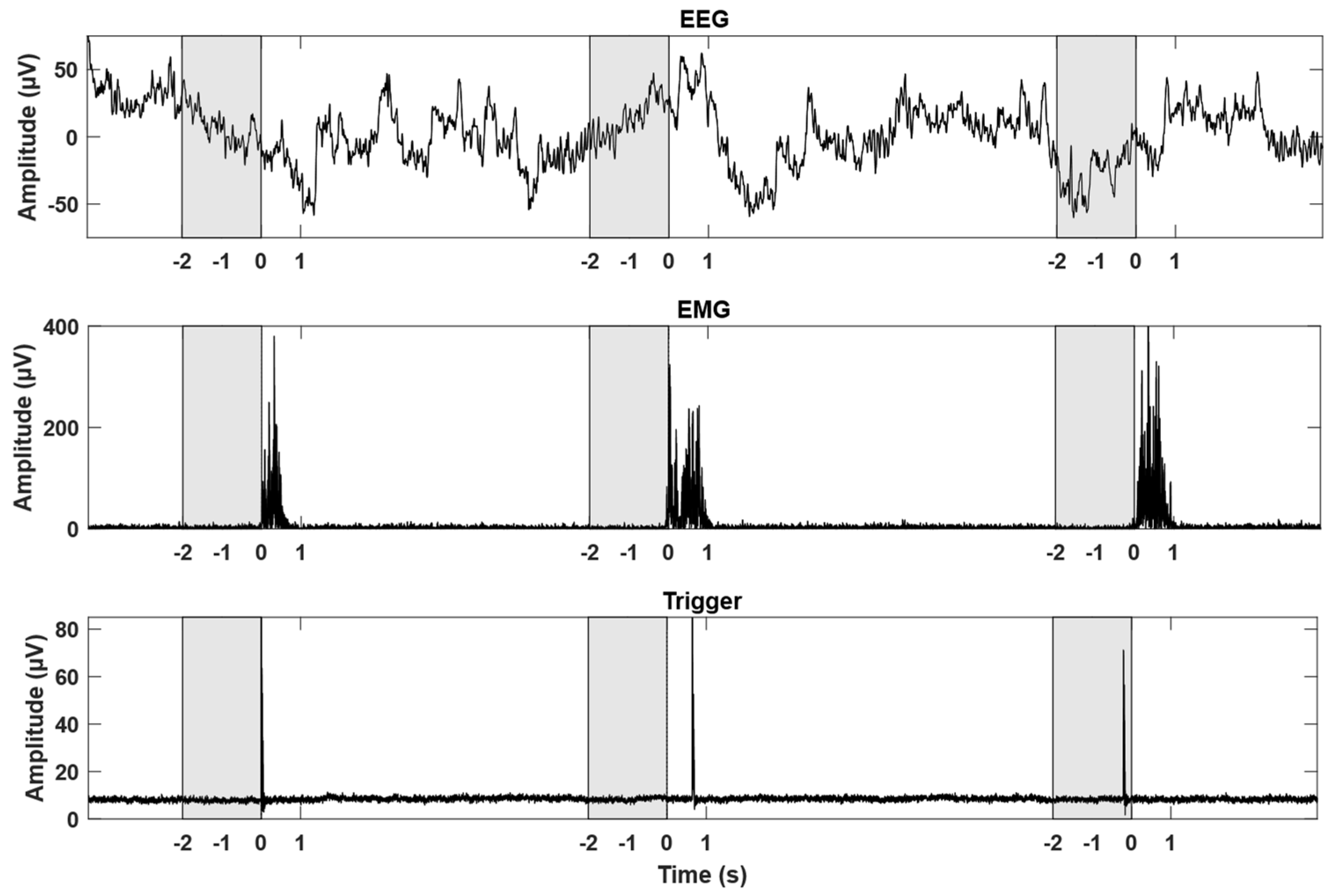 - Shibasaki, H.; Hallett, M. What is the Bereitschaftspotential? Clin. Neurophysiol. 2006, 117, 2341–2356. [Google Scholar] [CrossRef]