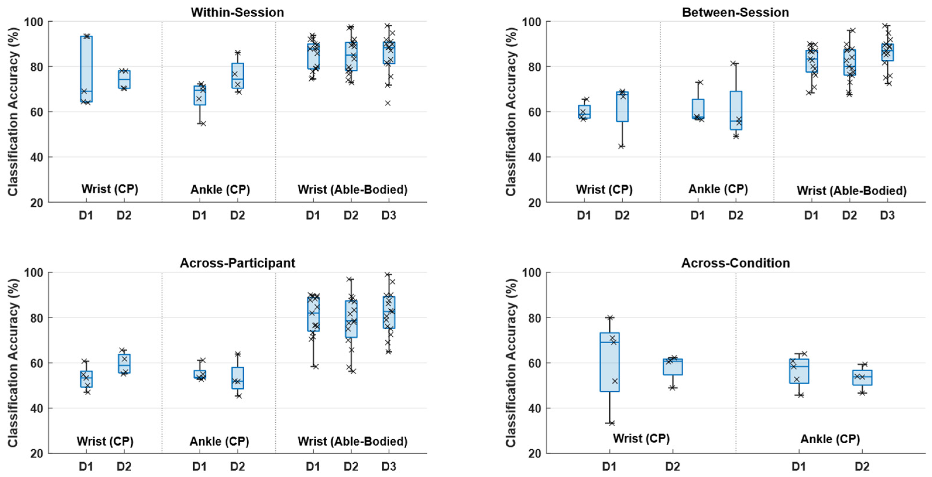 | Wrist (Able-Bodied) | 81 19 | 81 19 | 88 12 |