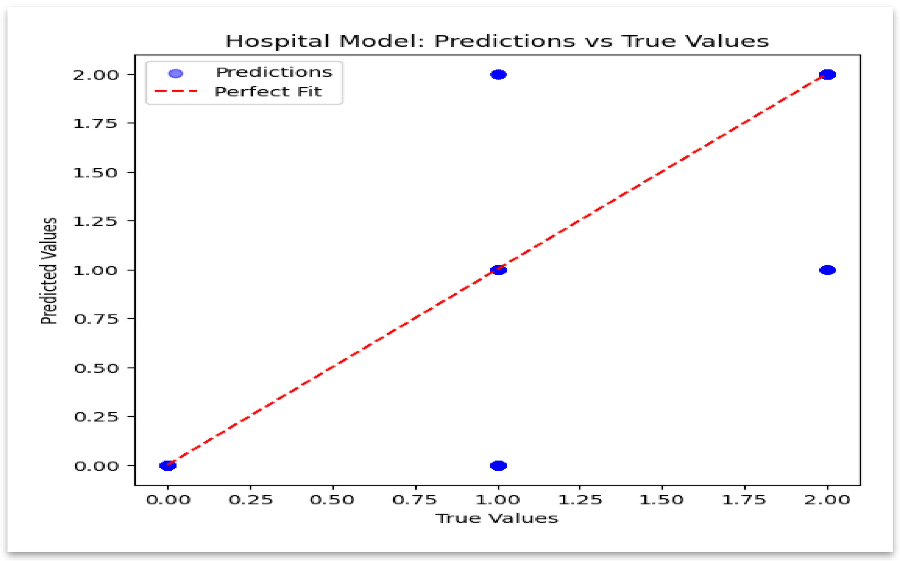 The hospital dataset includes features such as patient stay duration, the number of unique diagnoses, and a risc_score estimating hospitalization risk.