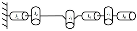 Now substitute the estimated values into the calculation. Considering that we have preliminarily decided to use ASA-CF material for 3D printing to manufacture robotic arms, ρ is taken as . Based on the preliminary design draft and the motor parameter documentation for similar sizes available on the market, the link is designed as a square prism with a cross-section of 9 mm per side, resulting in a cross-sectional area of (i.e., ). So . The average mass of commercially available motors of this size is approximately 100 g; therefore are taken, leading to the following further conclusions: