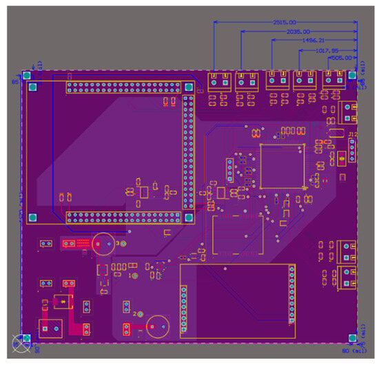 Holes 1–4 correspond to the attachment points for the panel connectors, providing a secure interface between the panel and the hull through eight fastening points. Holes 5–8 are designated for mounting the PCB designed by the electronics hardware team (see Figure 8). Hole 9 is for mounting the binocular camera used for target recognition. For this purpose, the project employs the AN5642 camera module from Alinx as the stereo vision sensor. Hole 10 serves as a cable pass-through to the lower compartment.