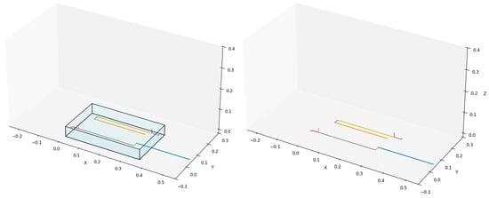 In the simulation tool developed by the authors, the entire process follows a workflow of model configuration, analysis, control, and visualization. As illustrated in Algorithms 1 and 2, this depicts the construction process and trajectory planning of a robotic arm. In this case, the modeling of the arm does not require a complex and fully detailed three-dimensional model. Instead, it can be accomplished using only key parameters, analogous to a configuration file. The example pseudo code provided in this section generates the left arm of the dual-arm assembly designed in the present project. Existing tools, such as ROS MoveIt and PyBullet, typically require complete 3D model files. The skeleton model approach adopted in this work has advantages of simple and computationally efficient, which is suitable for high-frequency parameter optimization. This is the reason why this method was chosen for this work.