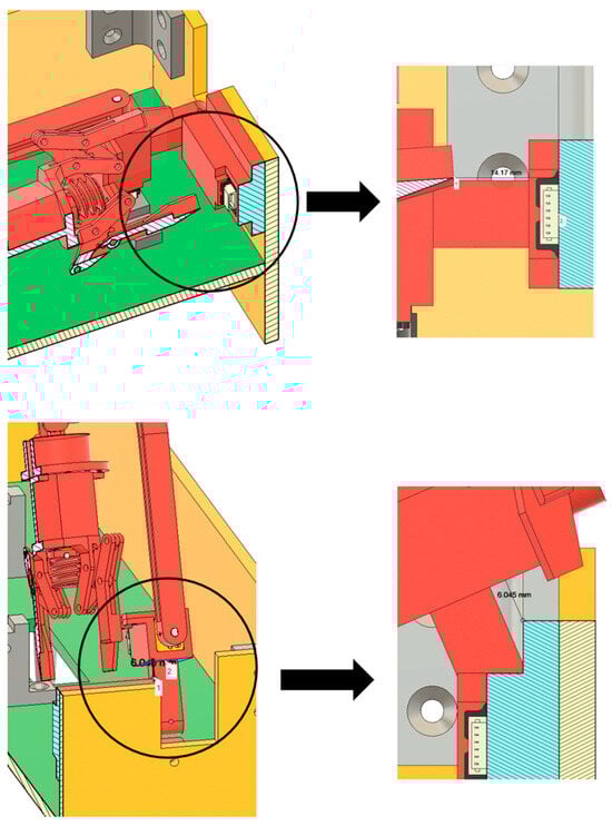 Related cross-sectional analysis of the arm’s deployment process, as is shown in Figure 19, and extensive geometric computation further infer that, under boundary conditions mentioned earlier, the end-effector does not interfere with the arm’s own structure nor hull framework, with enough clearance margin still maintained. This outcome demonstrates the correctness of the relevant parameter calculations carried out during the design process.