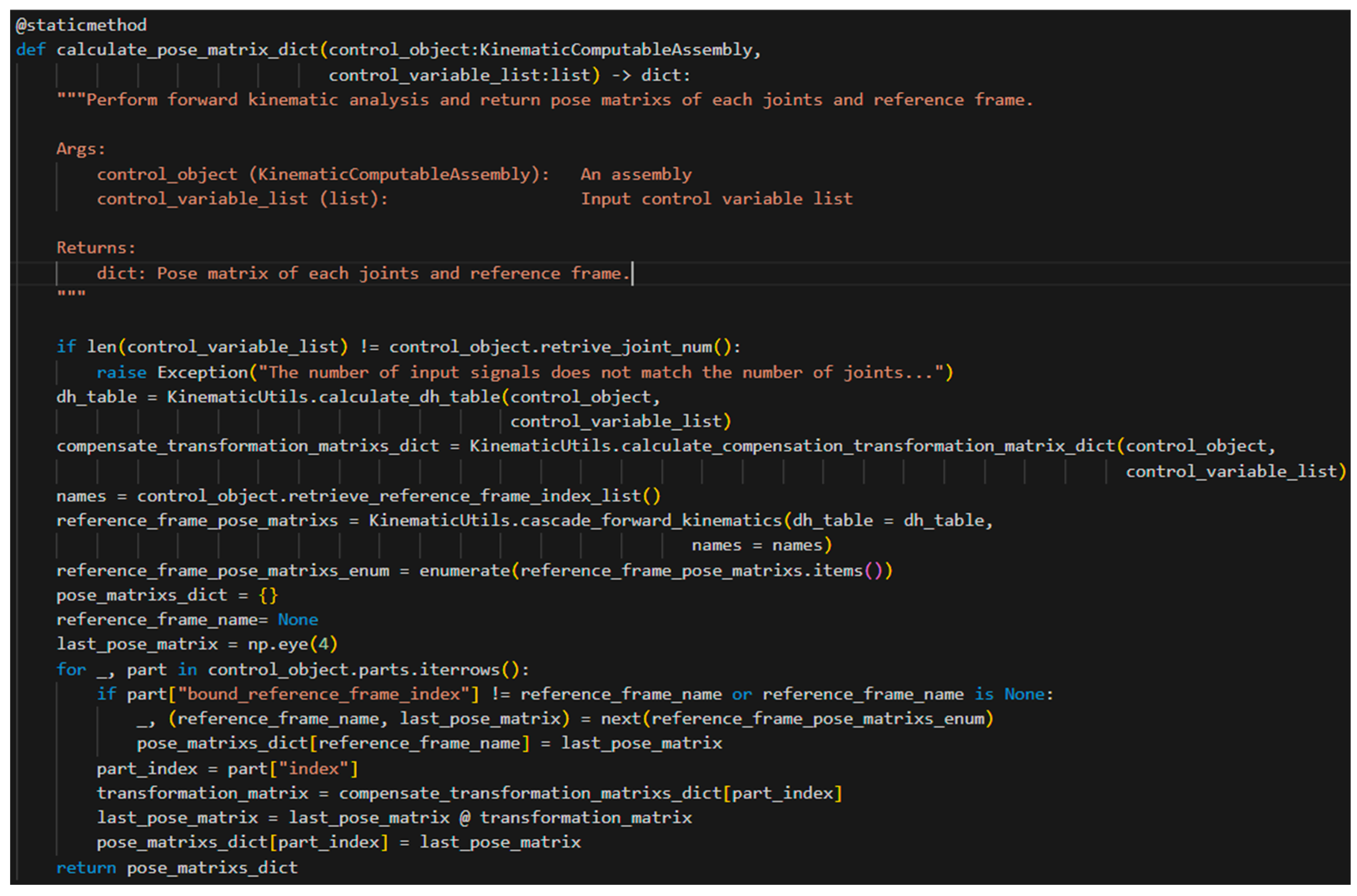 | 7: | Obtain joint variables of each point control_variable_list in trajectory. |
