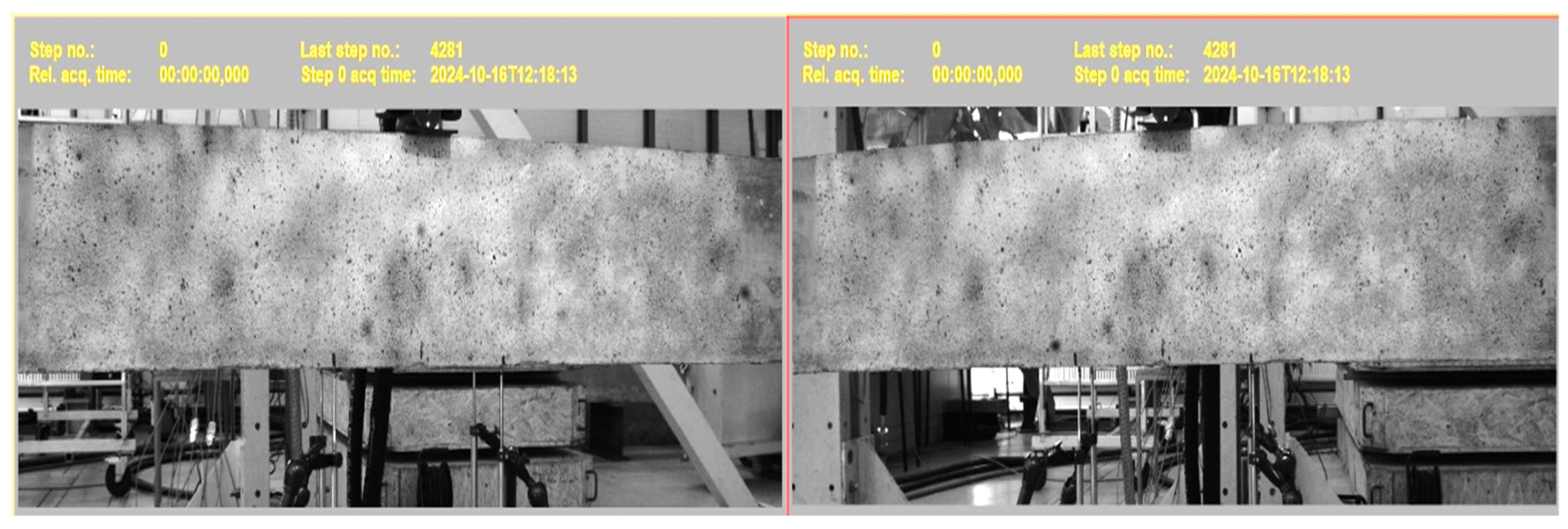 26]. The number of synchronized cameras observing the same area is crucial for accurate measurements. With only one camera, it is possible to determine the displacements or strains on a single surface. However, using two or more cameras allows for the measurement of out-of-plane displacements. DIC has been applied to a variety of tasks, including both destructive and non-destructive tests, across macro and micro scales. It is particularly useful for understanding cracking mechanisms in concrete [