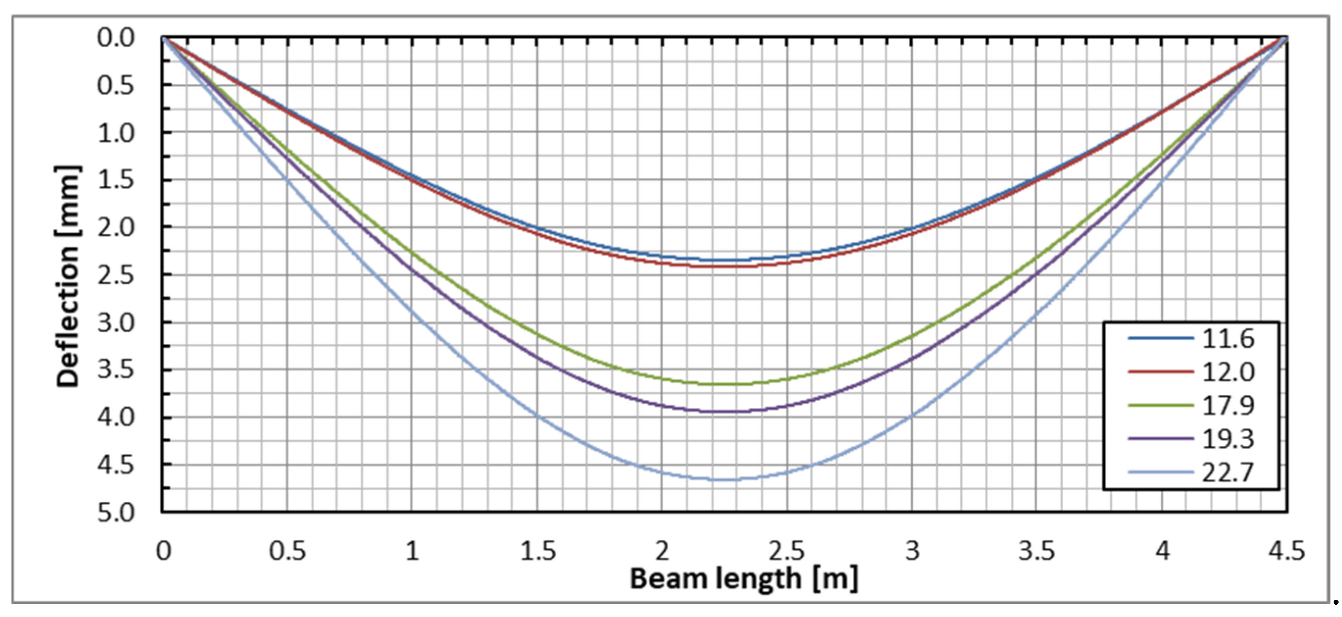 Comparison of the mid-span deflections of the exemplary beam determined by three different methods.