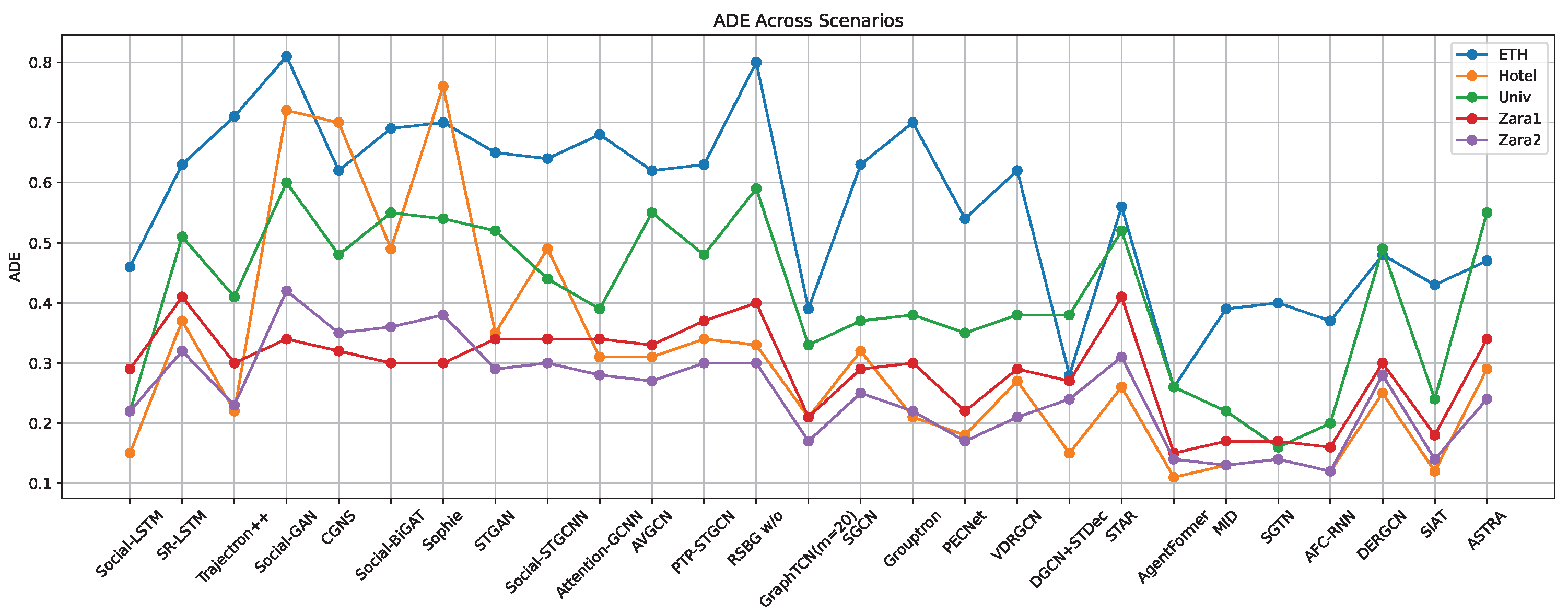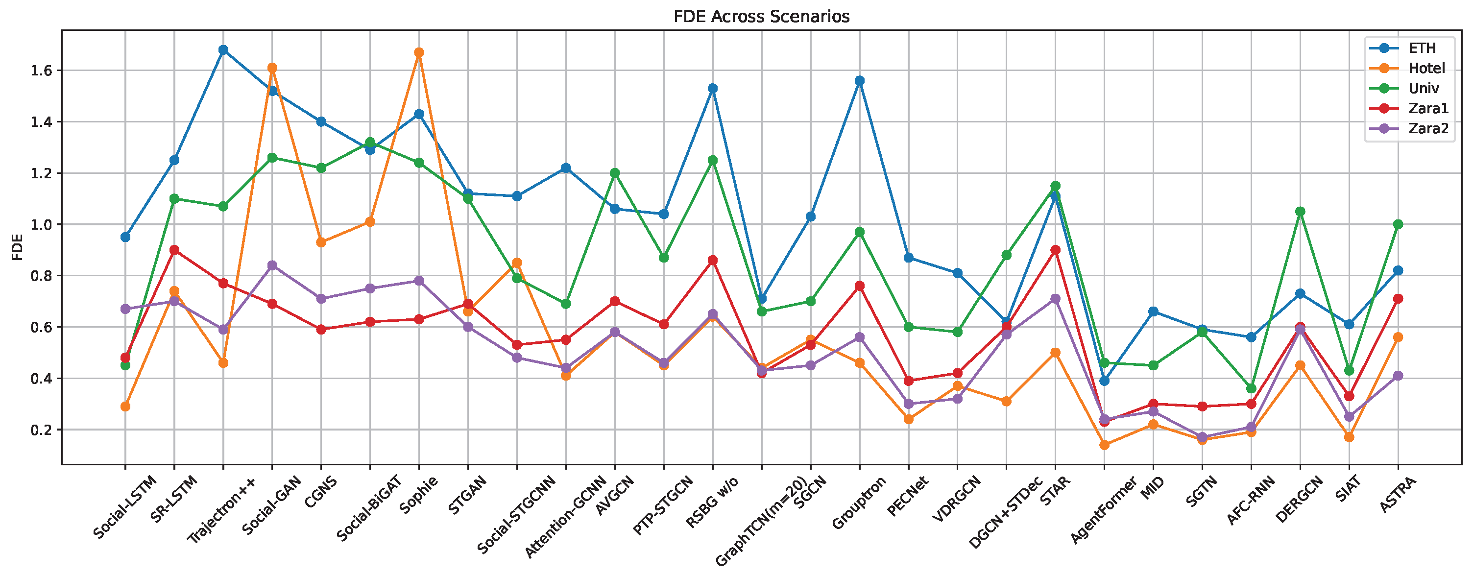 | Method | ETH (ADE/FDE) | HOTEL (ADE/FDE) | UNIV (ADE/FDE) | ZARA1 (ADE/FDE) | ZARA2 (ADE/FDE) | AVG (ADE/FDE) |