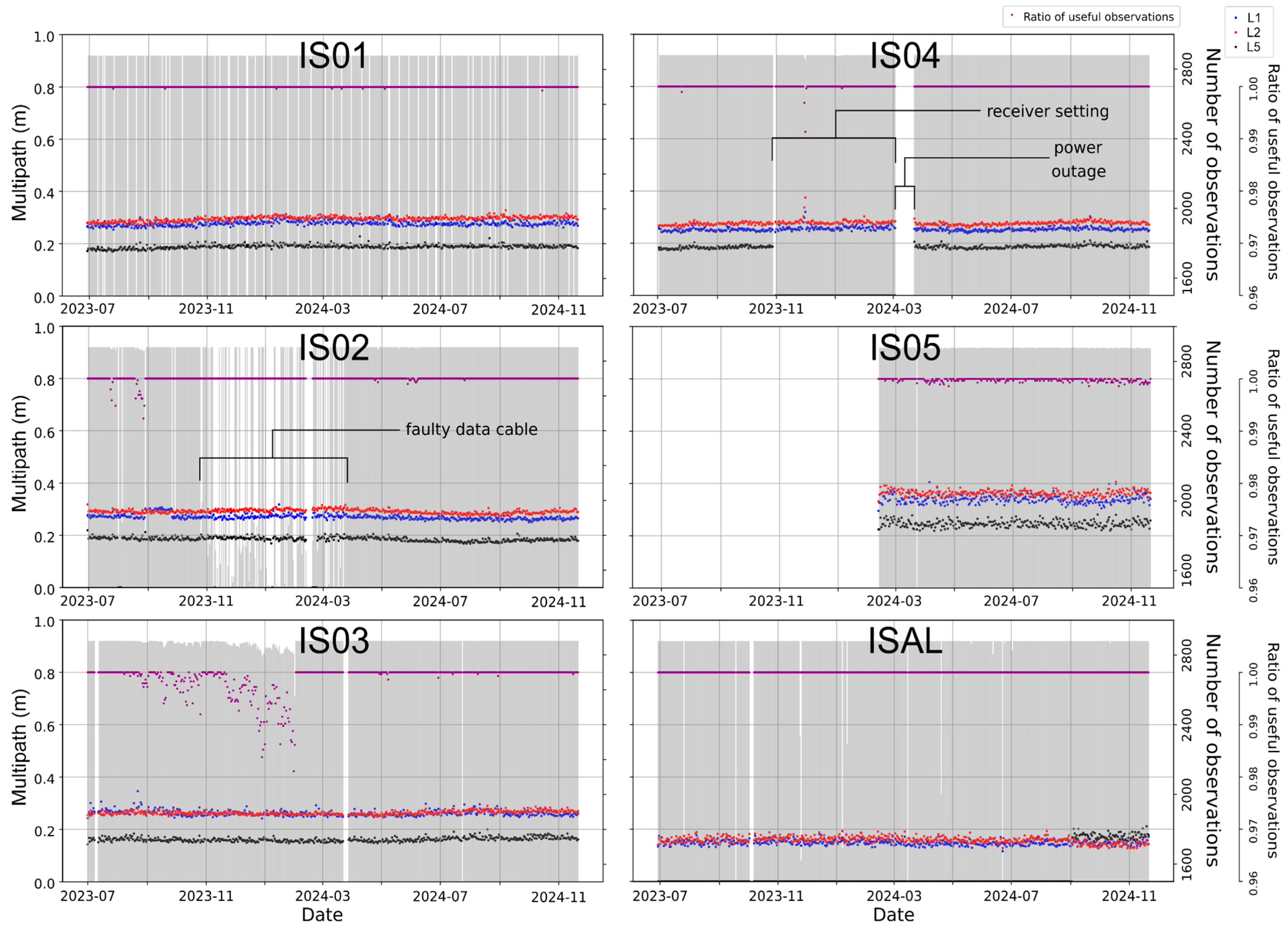 - Bradke, M.; Ruddick, R.; Rebischung, P.; Steigenberger, P.; Söhne, W.; Maggert, D. Guidelines for Continuously Operating Reference Stations in the IGS; International GNSS Service (IGS): Pasadena, CA, USA, 2023. [Google Scholar]