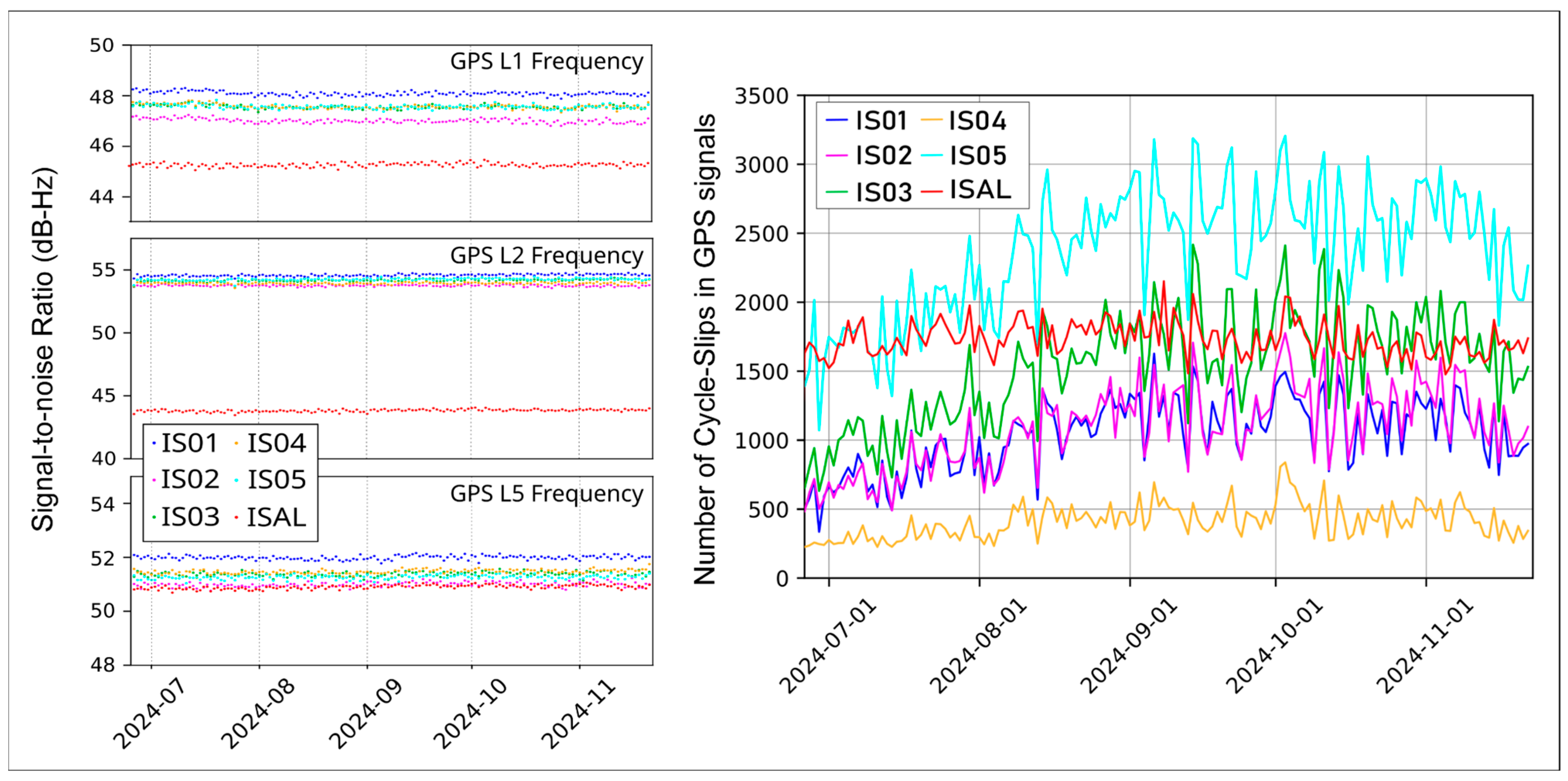 - Abraha, K.E.; Frisk, A.; Westberg, M.; Wiklund, P. SWEPOS Data Quality Monitoring—GNSS Signal Disturbances Detection System; Reports in Geodesy and Geographical Information Systems; Lantmäterigatan: Gävle, Sweden, 2021. [Google Scholar]