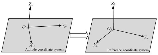 The schematic diagram of the transformation from the attitude coordinate system to the reference coordinate system is shown in Figure 17.