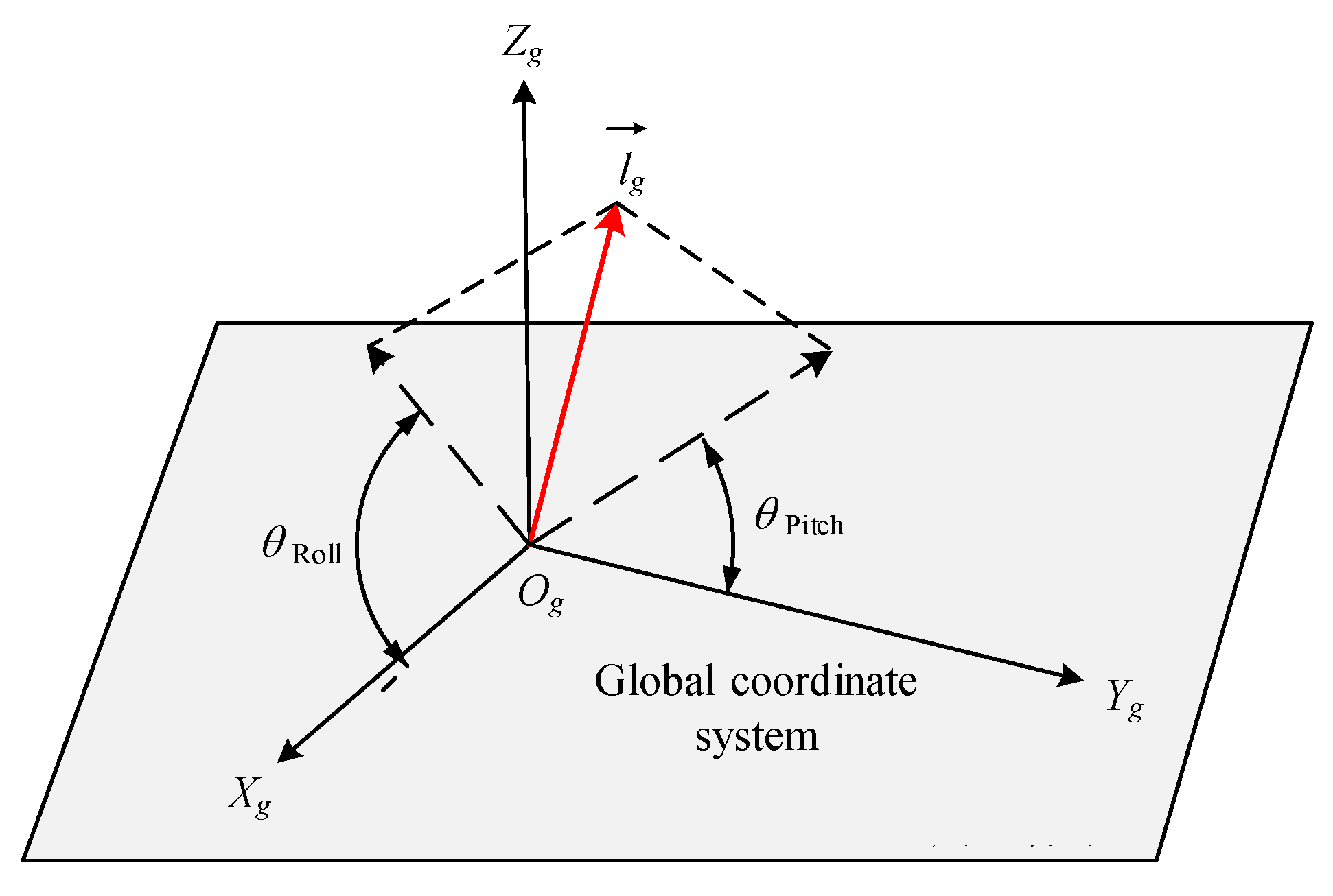In the actual engineering operation process, in order to adjust the verticality of a single pile to meet the engineering standards, it is necessary to decompose its verticality in the global coordinate system into roll angle and pitch angle, in order to obtain the tilt angle of the single pile in a specific direction and adjust its verticality to reach the predetermined angle. The roll angle