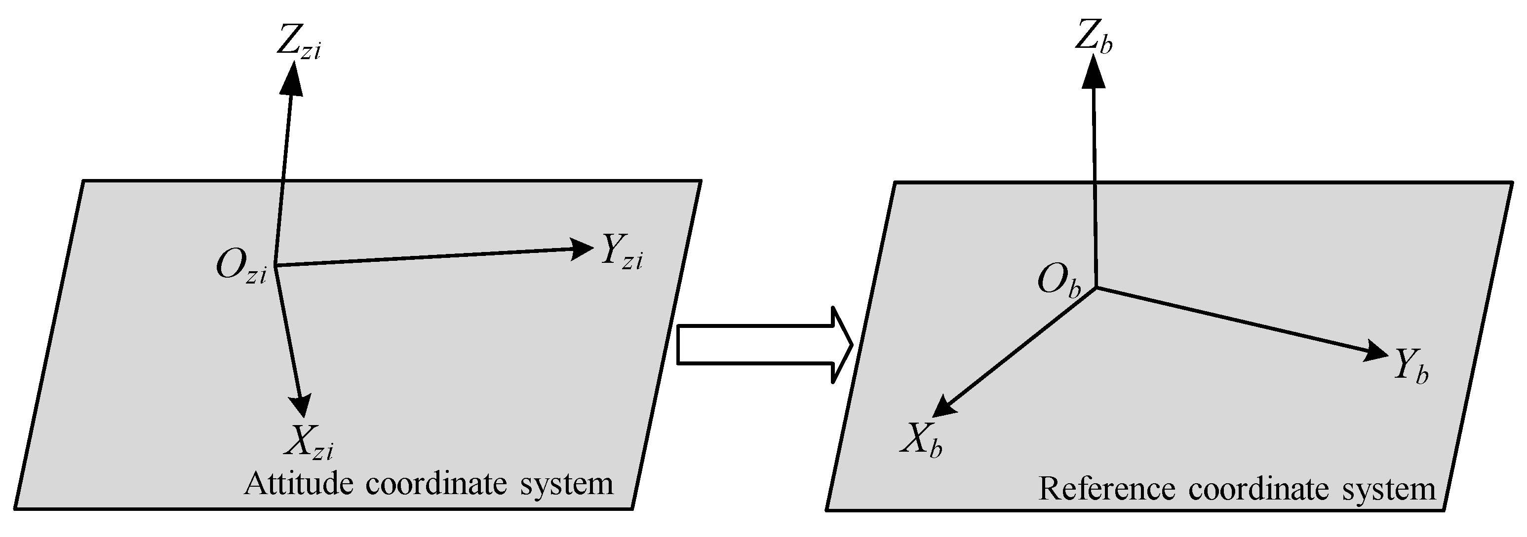 The schematic diagram of the transformation from the attitude coordinate system to the reference coordinate system is shown in