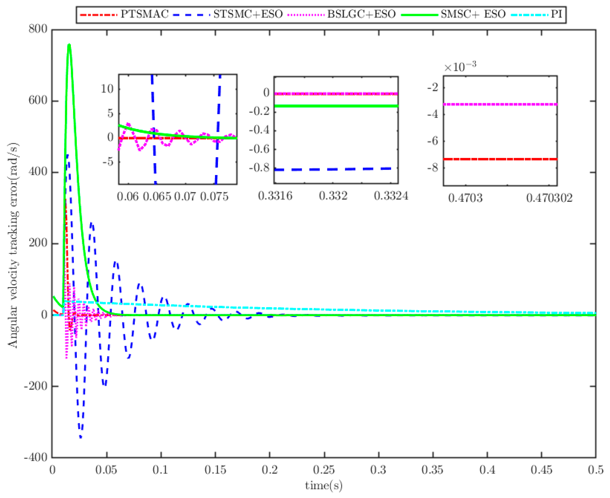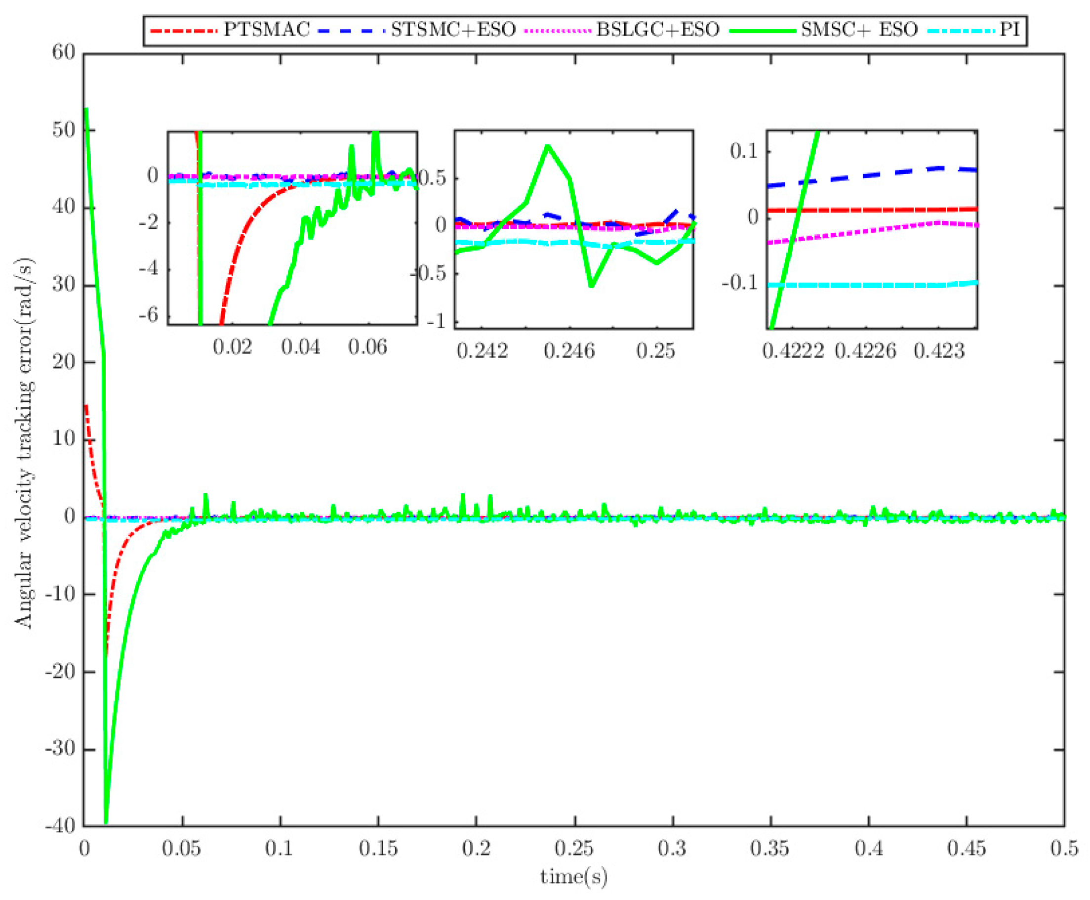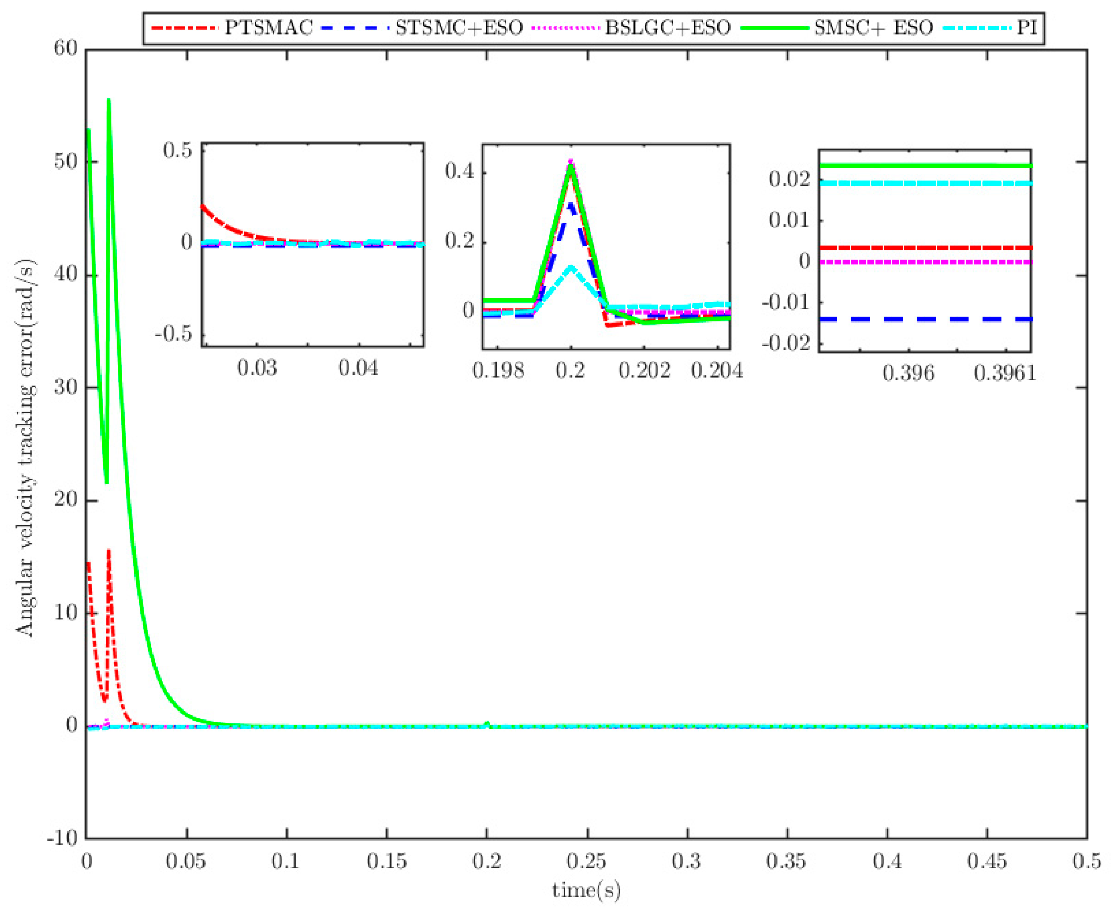 - Sliding-mode speed controller based on ESO (SMSC+ESO) [25].