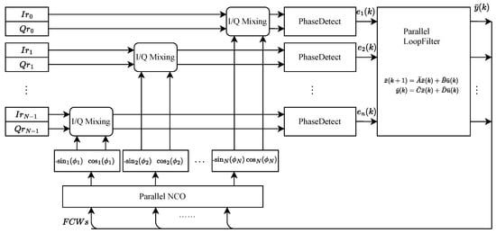 This paper presents a parallel implementation of the Costas loop for QPSK demodulation, as illustrated in Figure 1. The Costas loop comprises a quadrature mixer, a phase detector, a loop filter, and a numerically controlled oscillator (NCO). Among these components, the quadrature mixers and phase detectors, being memoryless, are parallelized by simple replication across N channels, with each channel n operating as: