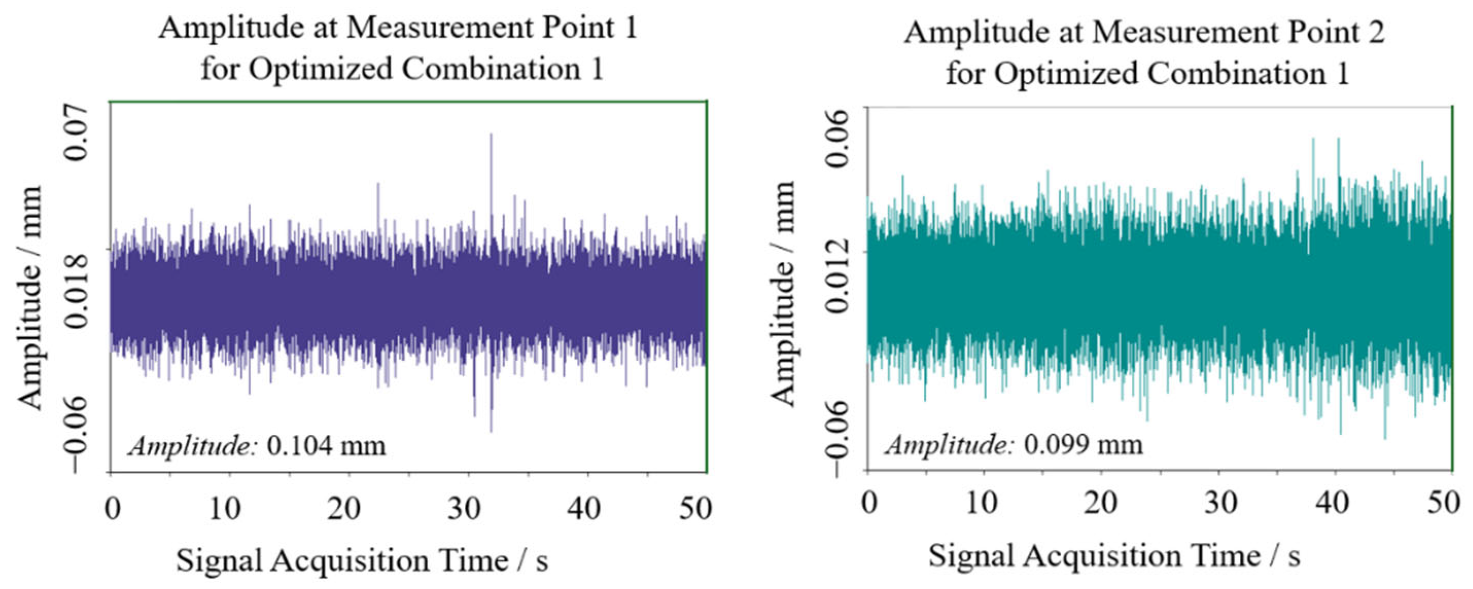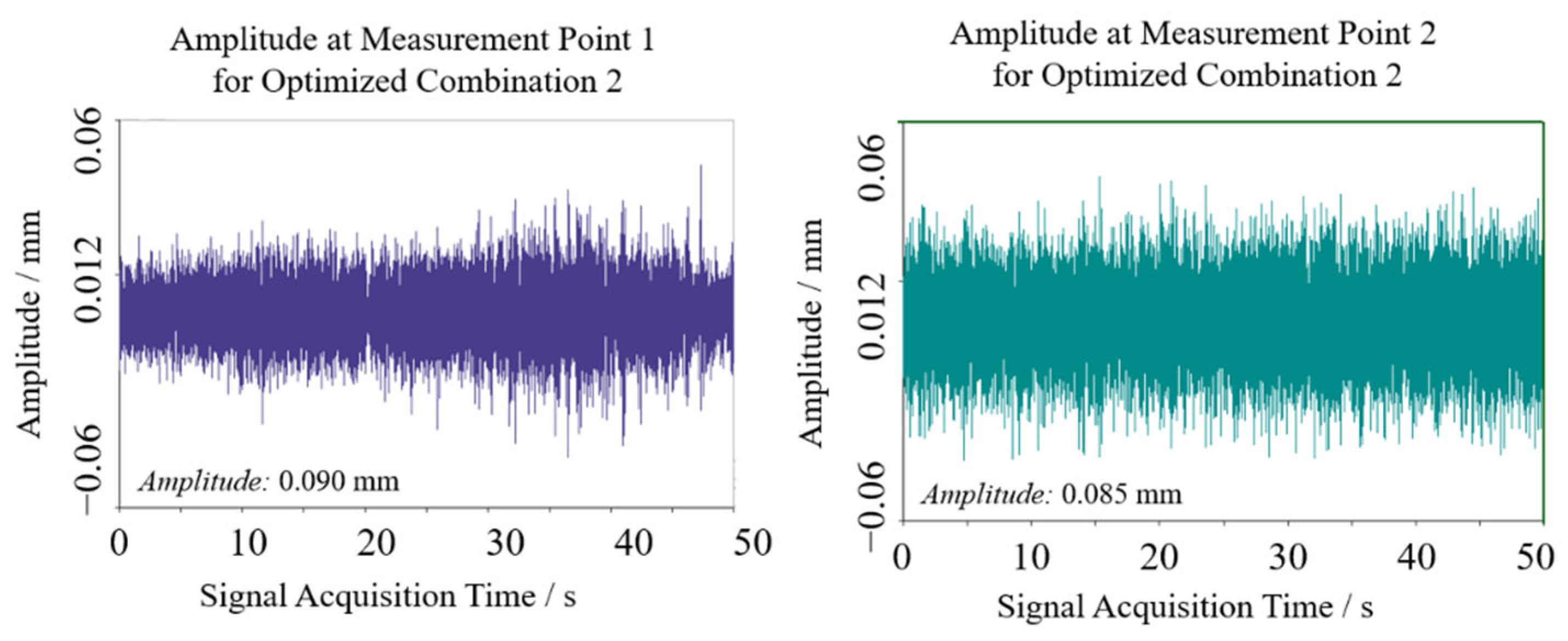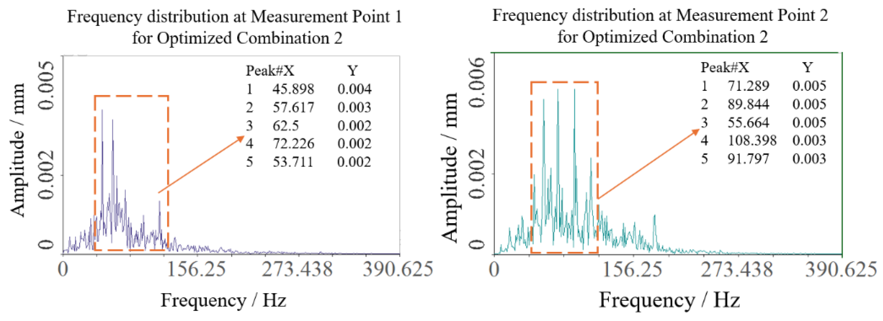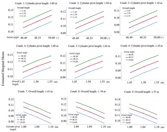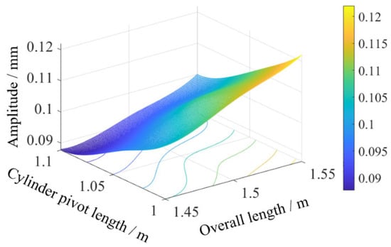 - Cylinder pivot length exerted the most significant influence on sway amplitude (F = 42.250, p = 0.023), surpassing the contributions of initial angle (F = 30.484) and overall length (F = 27.062). This confirms that repositioning the hydraulic cylinder pivot directly optimizes torque distribution, effectively suppressing vibration. Duncan’s post hoc test further validated statistically significant differences between factor levels, providing robust statistical foundations for engineering optimization.