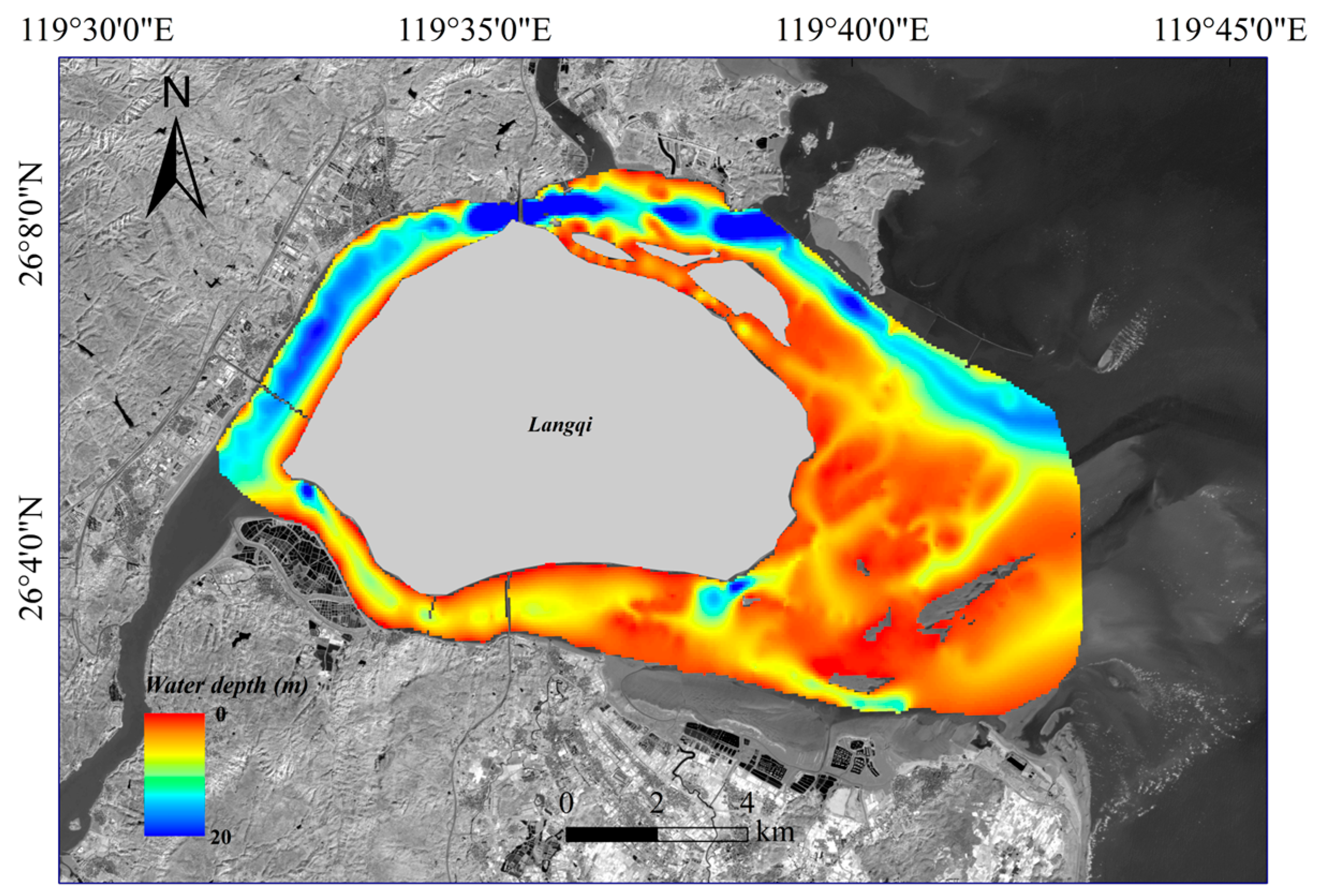 - Xu, X.; Pan, Q.; Wu, H.; Zhang, D.; Zhang, Z.; Gu, Y.; Wang, Z. Research on improving the accuracy of remote sensing-based bathymetry on muddy coasts. Estuar. Coast. Shelf Sci. 2025, 313, 109126. [Google Scholar] [CrossRef]