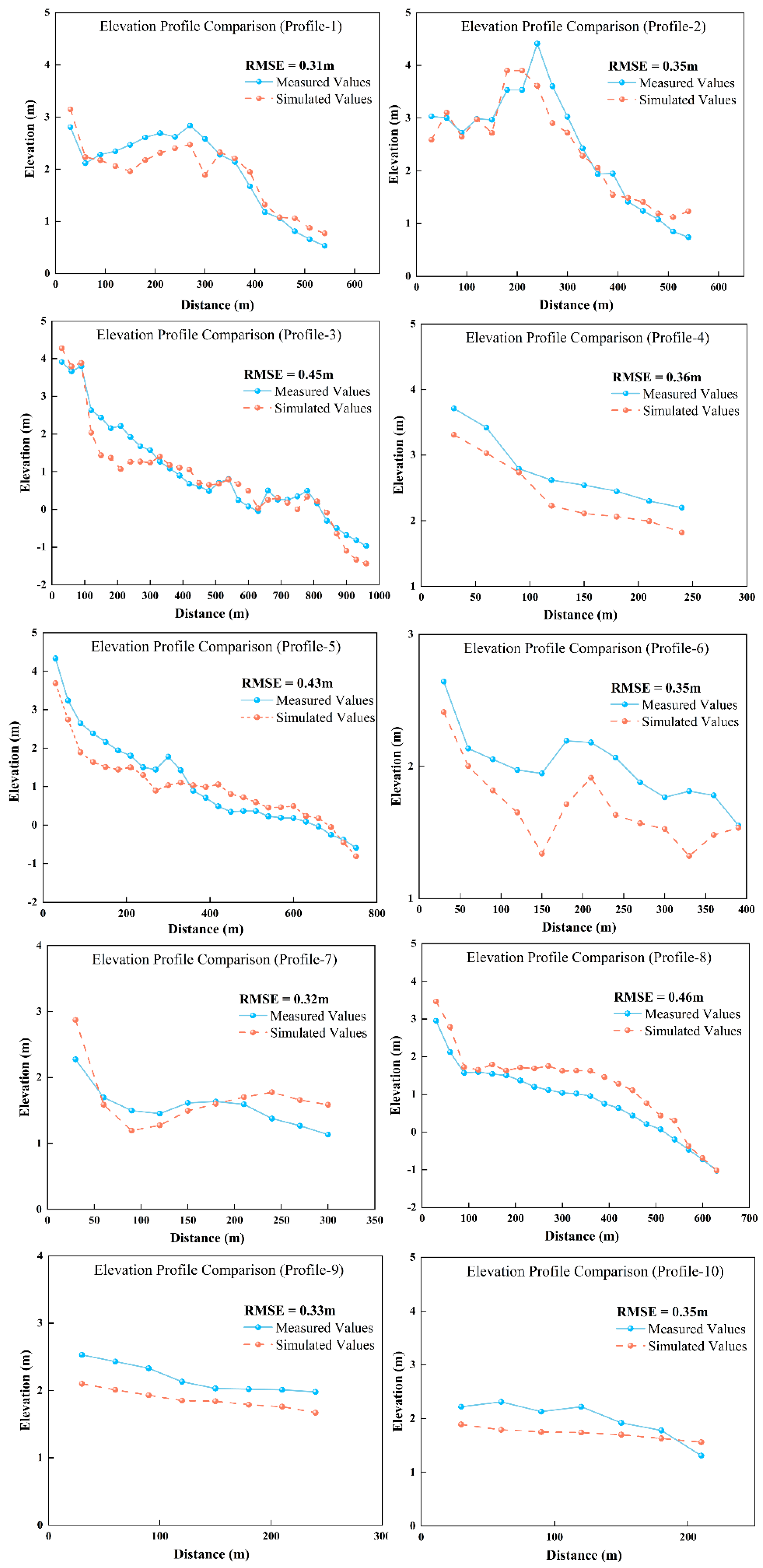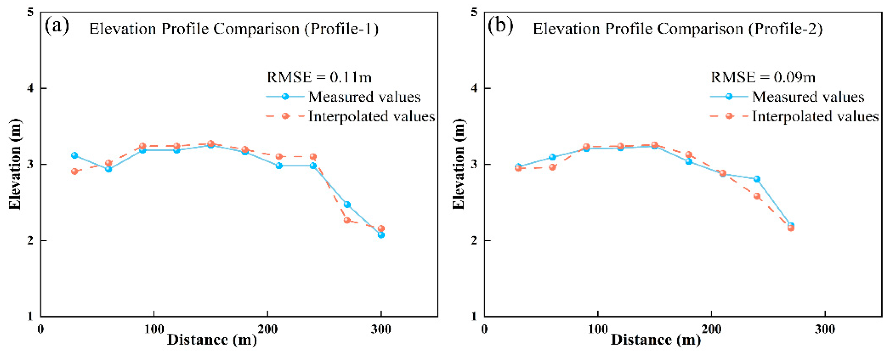 3.2. Topographic Inversion Results and Accuracy Assessment for the Bare Flat Zone