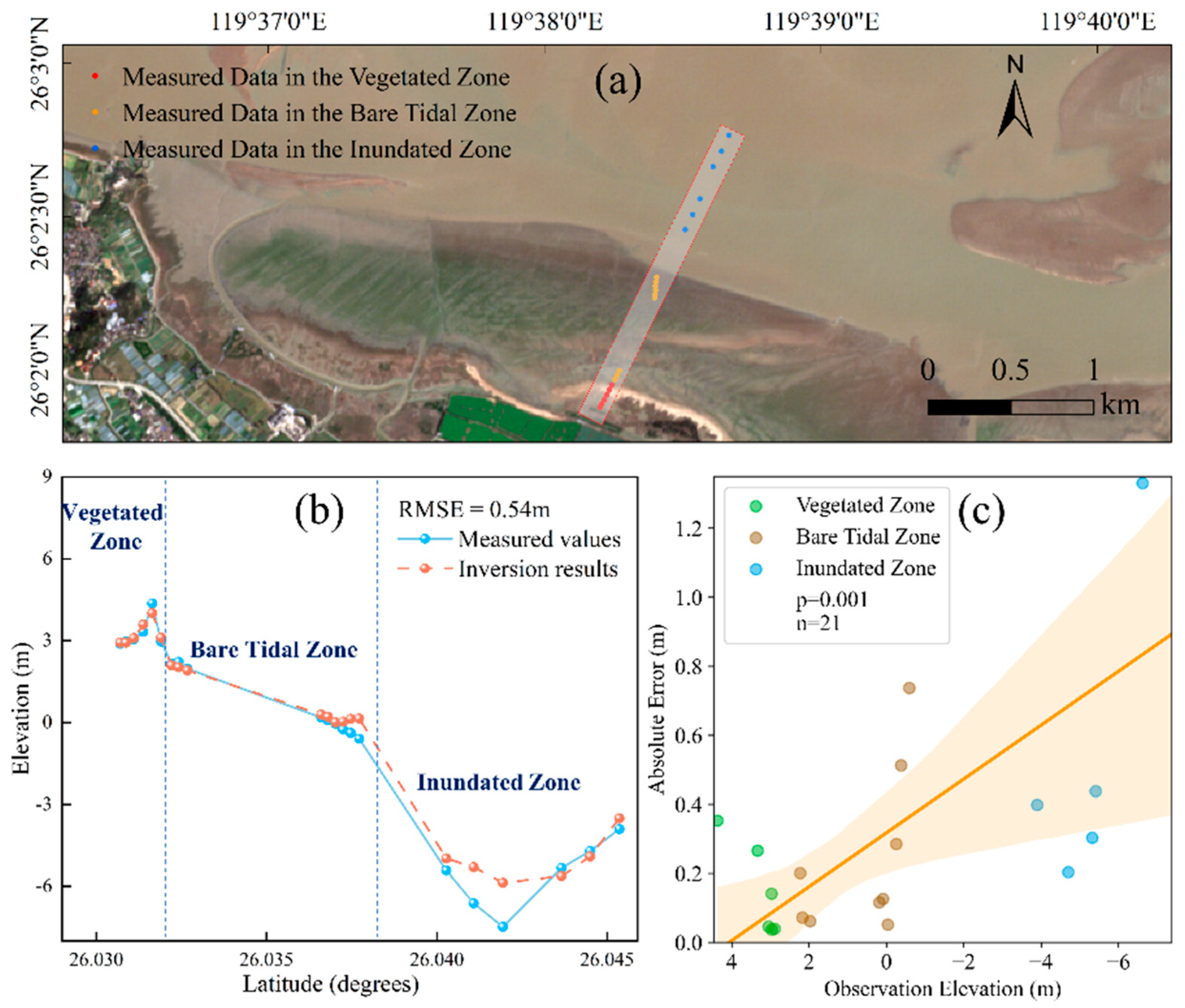 3.1. Topographic Inversion Results and Accuracy Assessment for the Inundated Zone