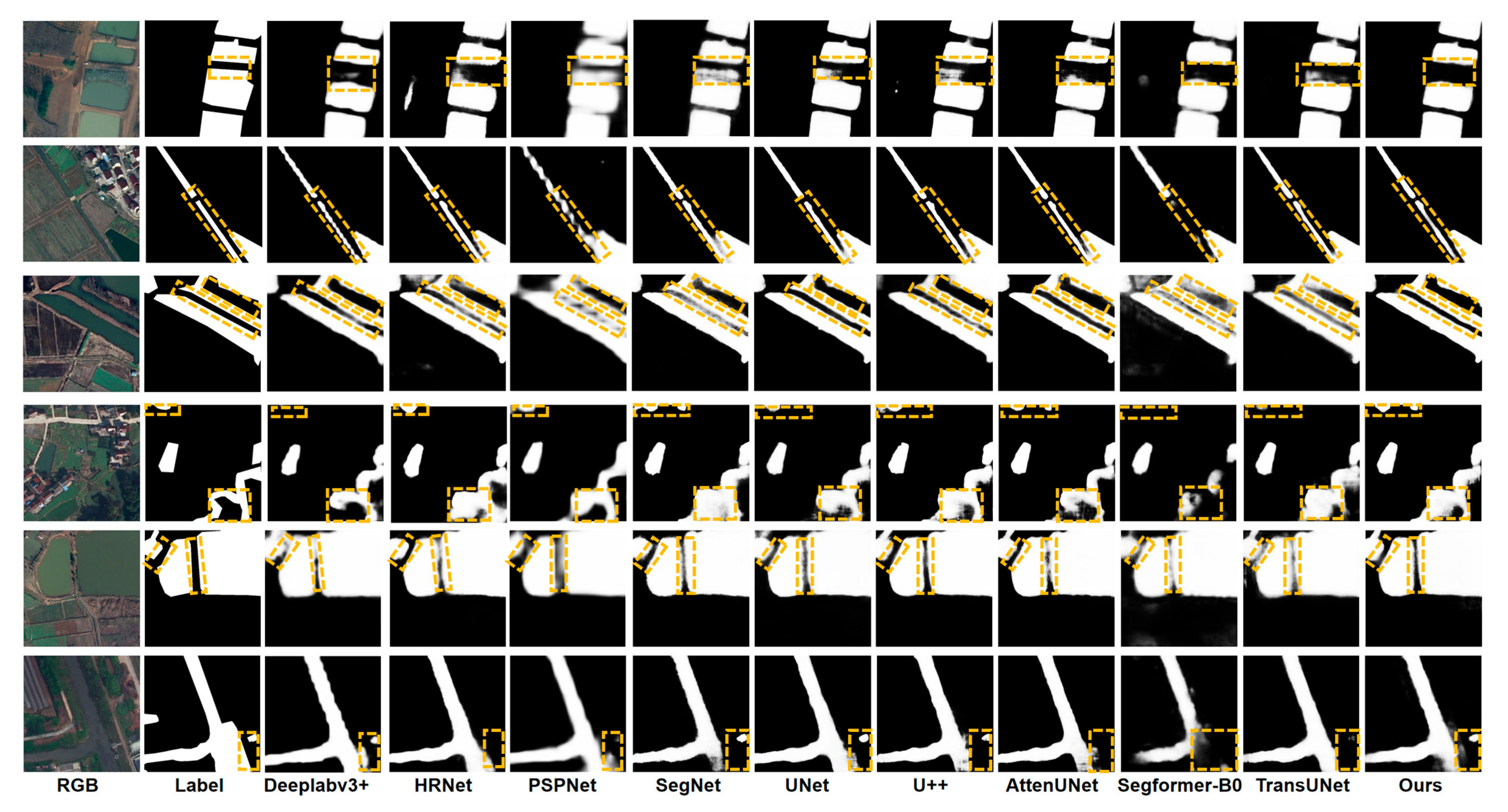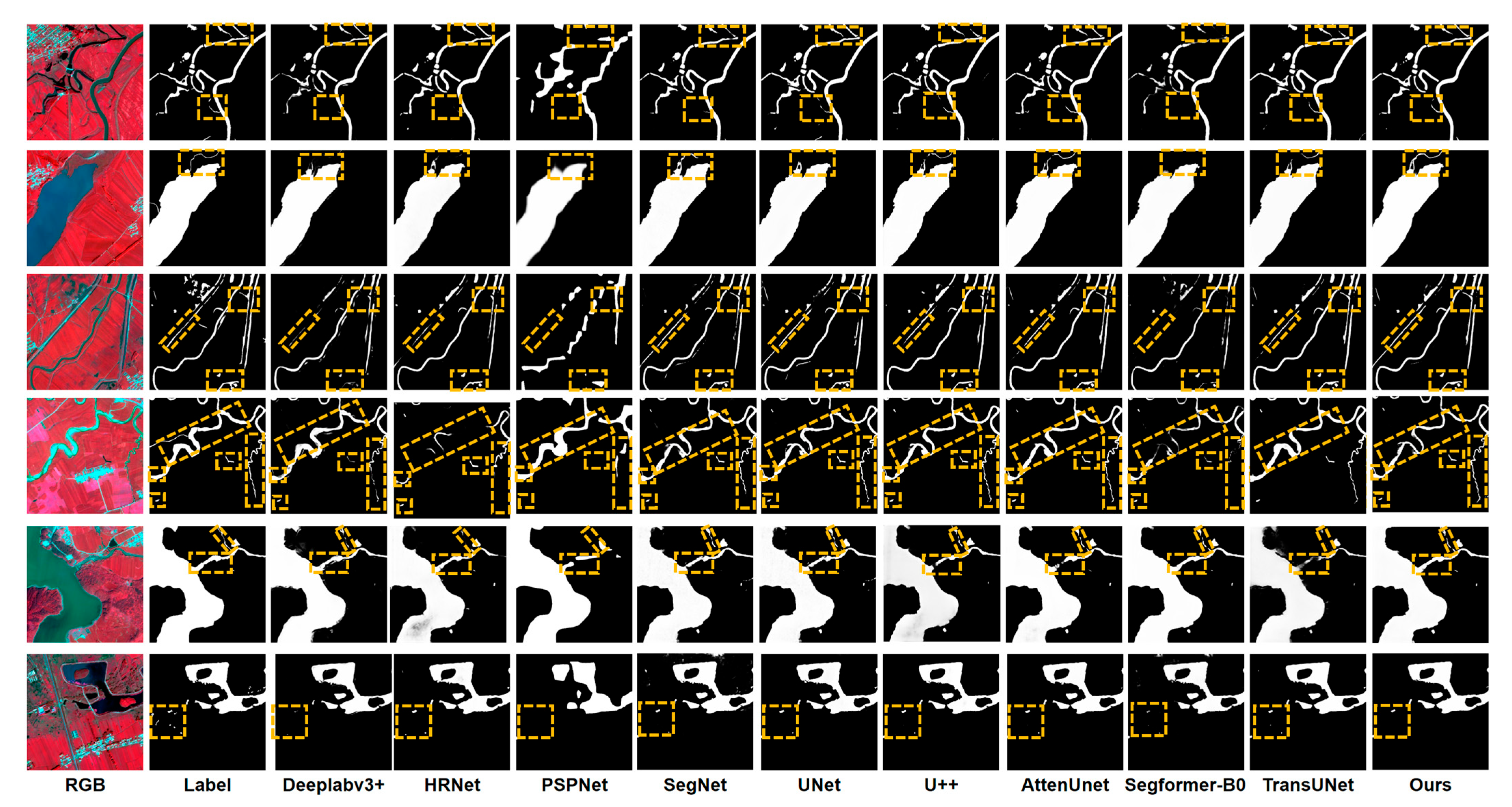 3.1. Visualization of Segmentation Results for Water Bodies with Different Scales and Morphologies