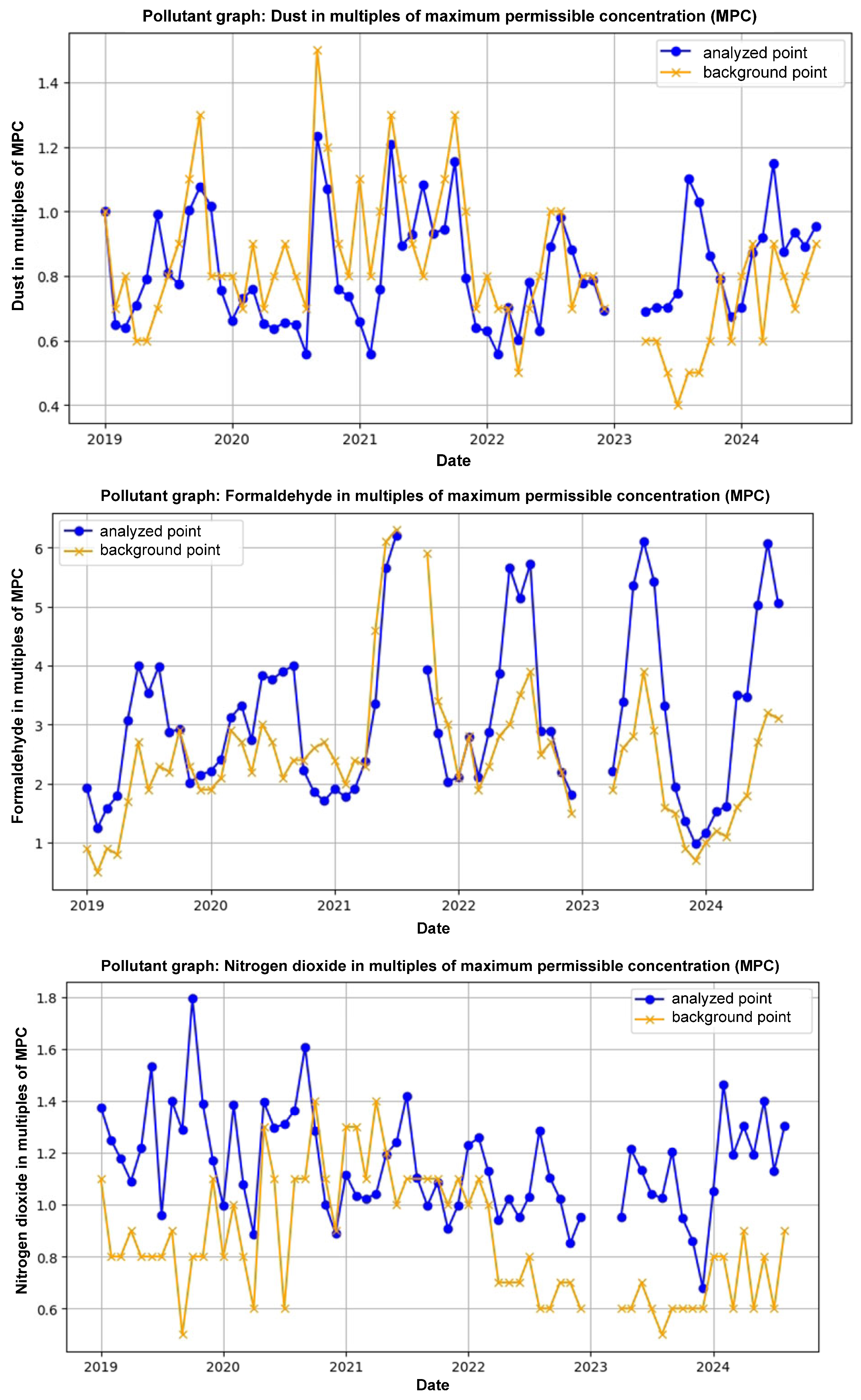 40] describes a method for automatically generating reports on the number of exceedances of established standards for atmospheric markers. A data processing algorithm is proposed for operational air quality control and presentation of results in the form of reports that can be used in environmental monitoring.