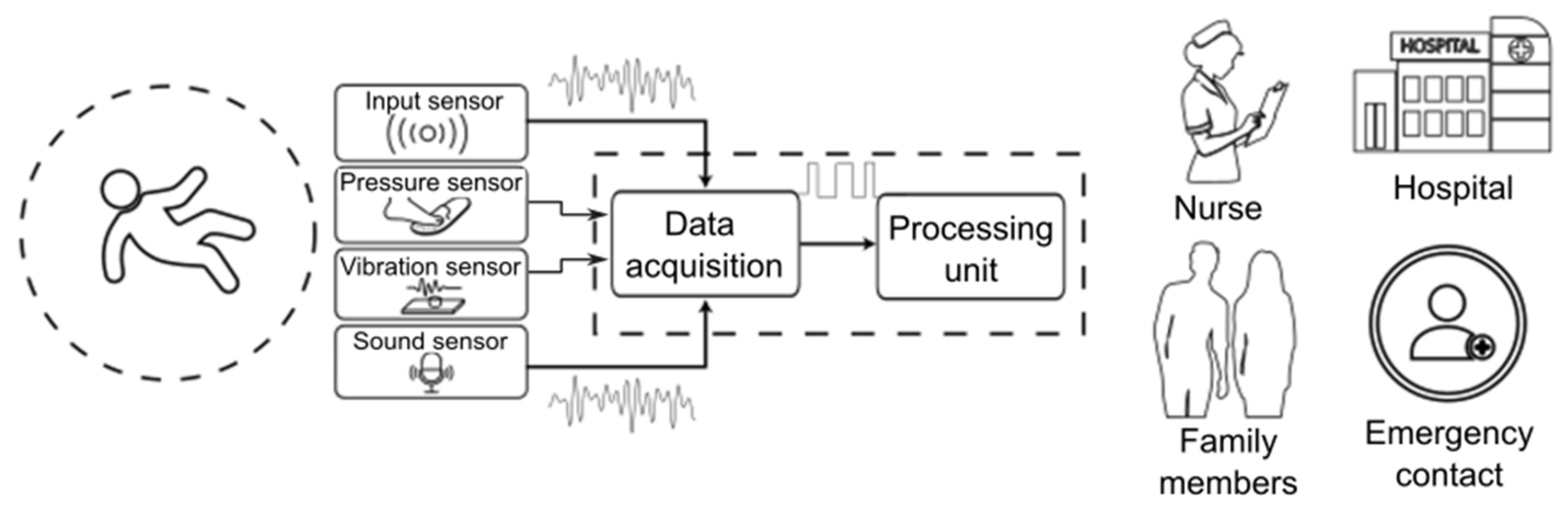 3.3.3. Fall Detection Systems Based on Pressure, Vibration and Sound Sensors