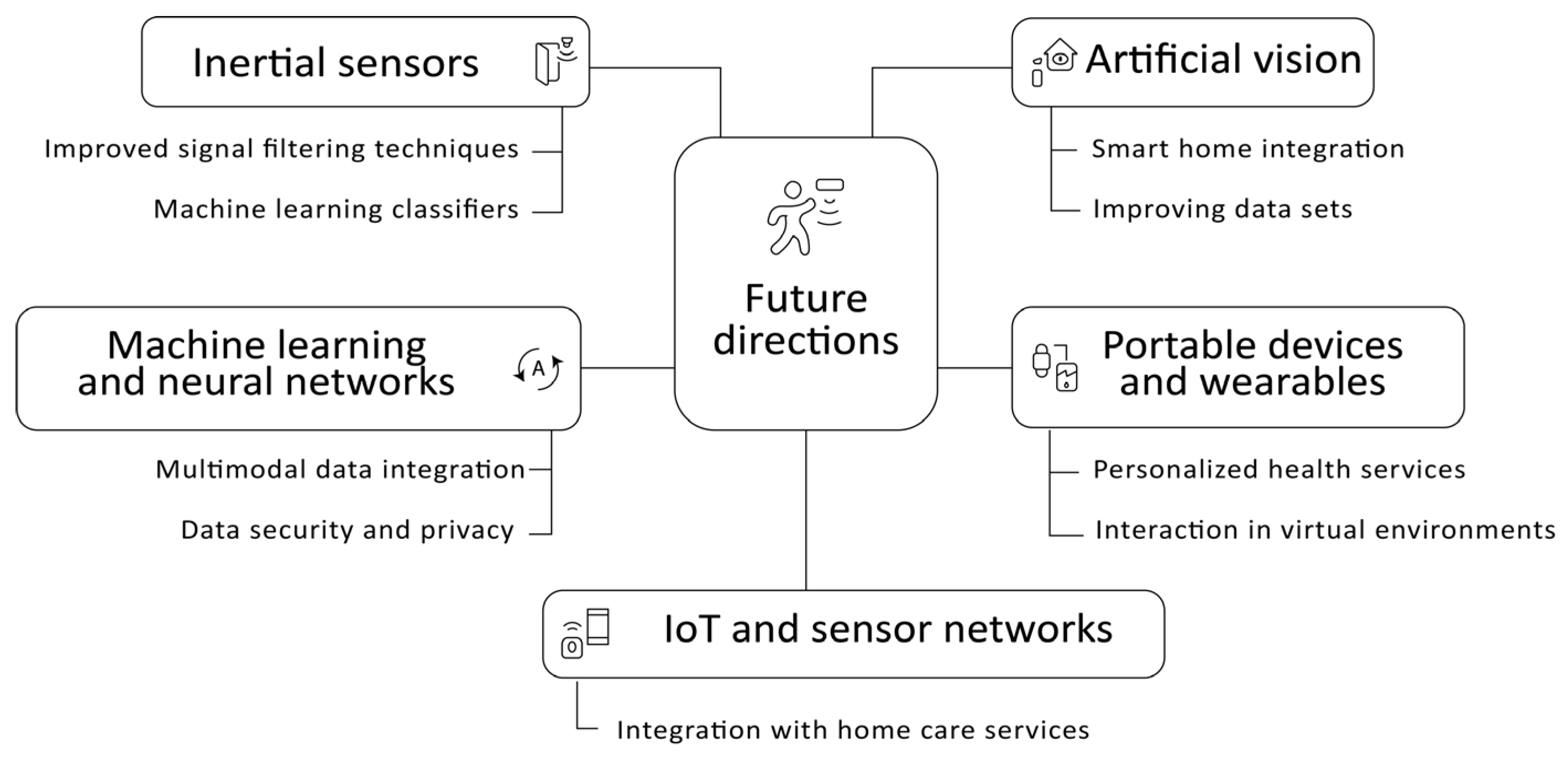 | Data fusion and multimodal approaches | Dependence on sensor quality and placement |