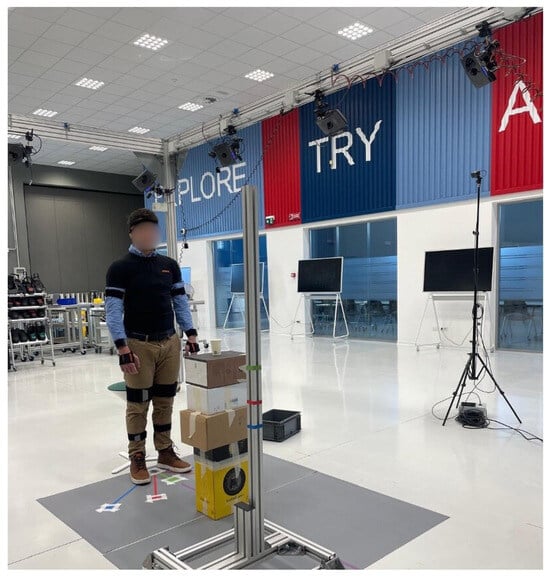In this study, we considered only signals that could be recorded without interfering with the physiological motor strategy of the recruited workers during the execution of lifting activities: miniaturized and wirelessly connected IMUs and infrared cameras, as shown in Figure 1.