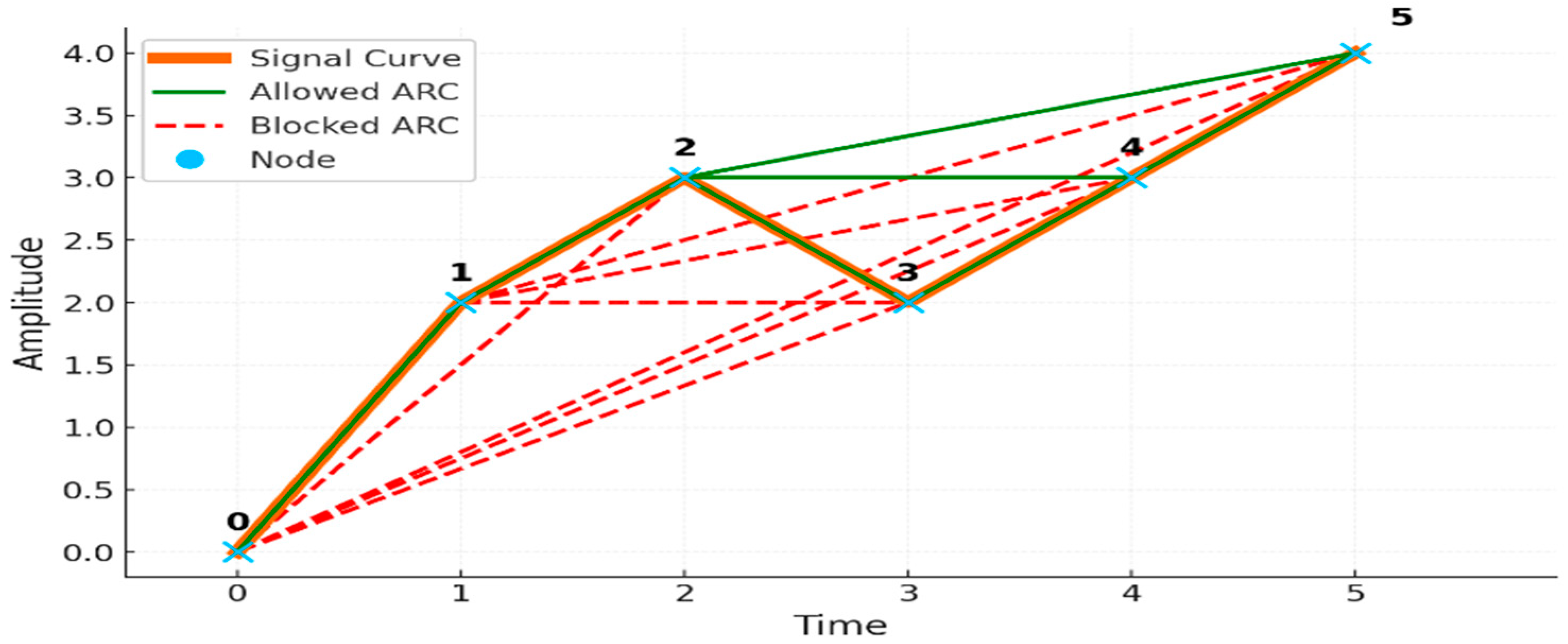 This section discusses a novel geometric principle and the CONECT framework in detail. The workflow also covers the systematic transformation of each EEG segment into a weighted complex network using the novel Angle-Relation Connection (ARC) Rule. In this process, each time point in the EEG signal is modeled as a node, and edges are established based on an angular monotonicity condition: two points are connected only if the angular slope between them exceeds that of all intermediate points. This rule encodes signal curvature and directional change rather than relying on conventional line-of-sight or threshold-based comparisons.