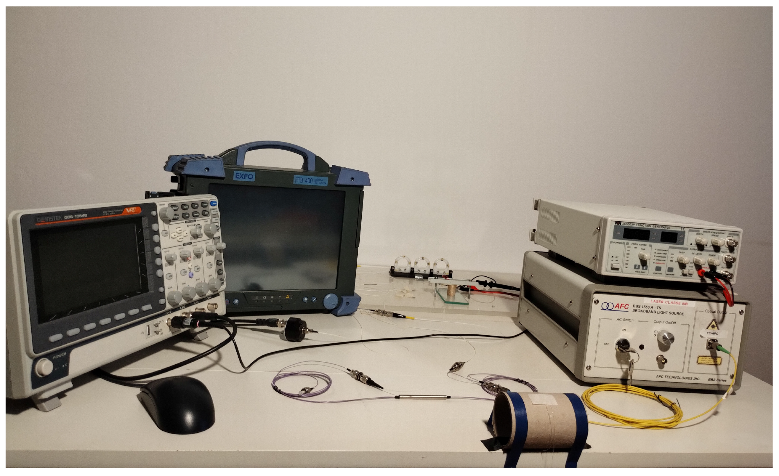 The experimental setup of the proposed two-parameter sensor of strain and dynamic transverse force is shown in