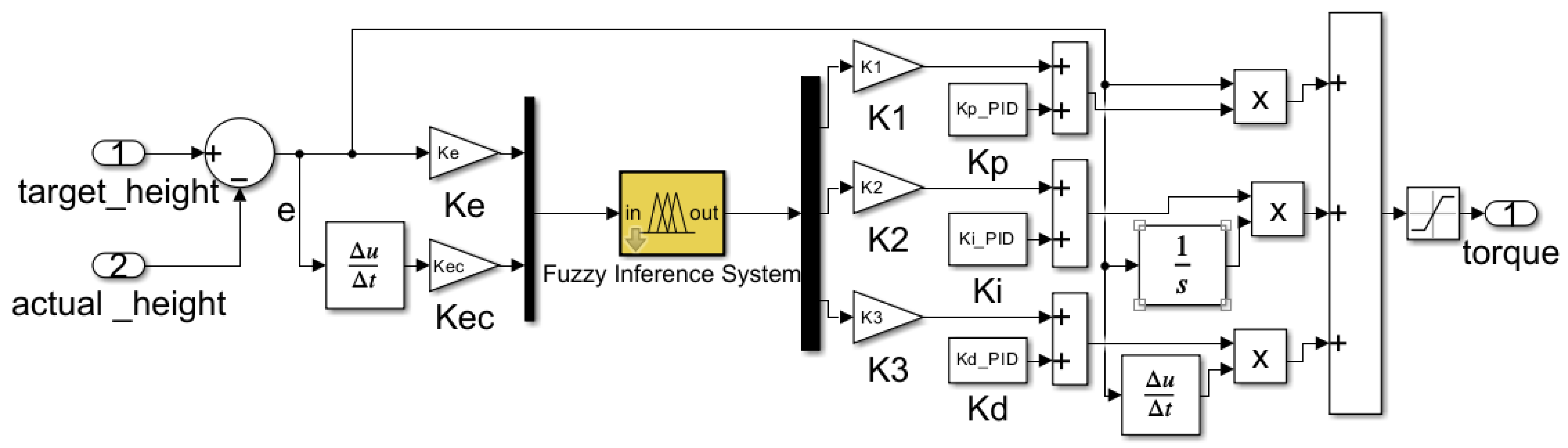 - An active levelling system for small agricultural machinery chassis in hilly terrain was designed based on a fuzzy PID algorithm, proposing a ‘servo electric cylinder-spring-shock absorber series configuration’ solution. Kinematic and dynamic models were established based on the installation position and operational state of the electric cylinder within the quarter-link suspension. The kinematic model yielded the relationship between the vertical displacement of the electric cylinder’s support point and the extension length of its rod.