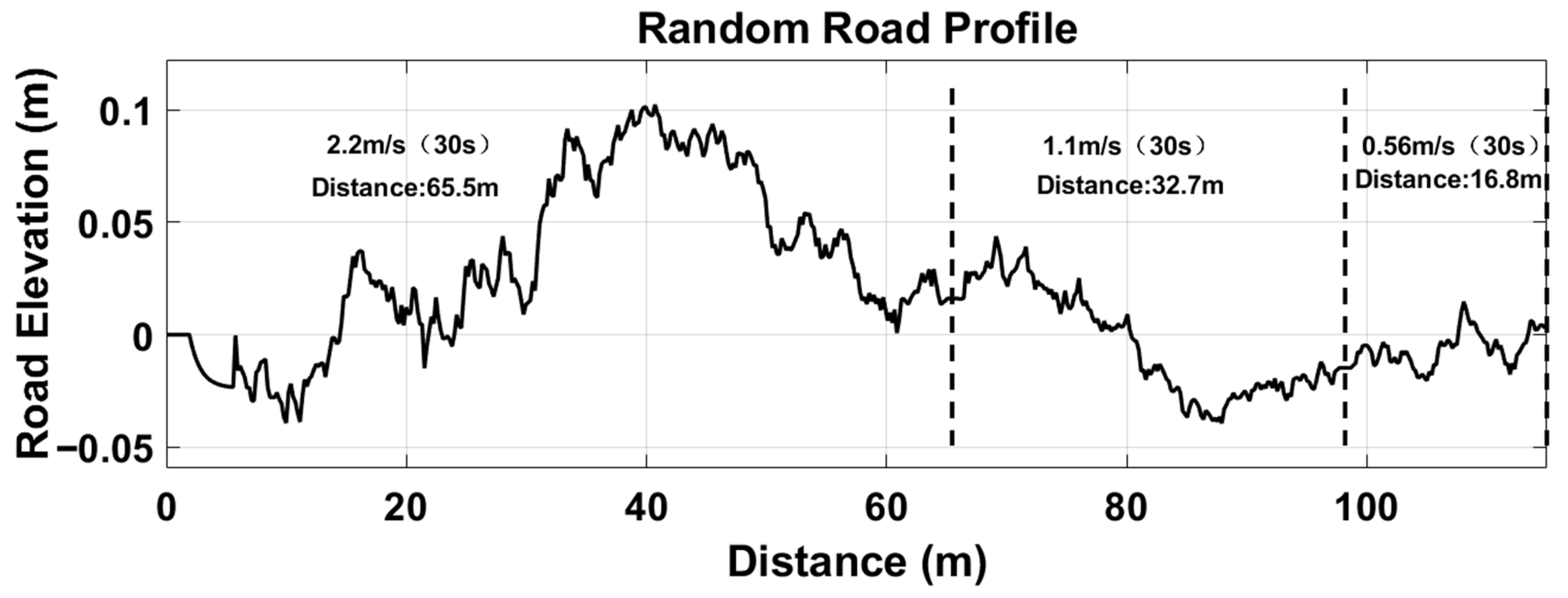 - The road surface excitation model excludes unstructured terrain features. This paper generates random road surface excitation based on the ISO 8608 standard, omitting irregular disturbances common in hilly terrain such as protruding rocks, potholes, and subsidence in soft soil. Soft soil causes variations in tyre contact area.
