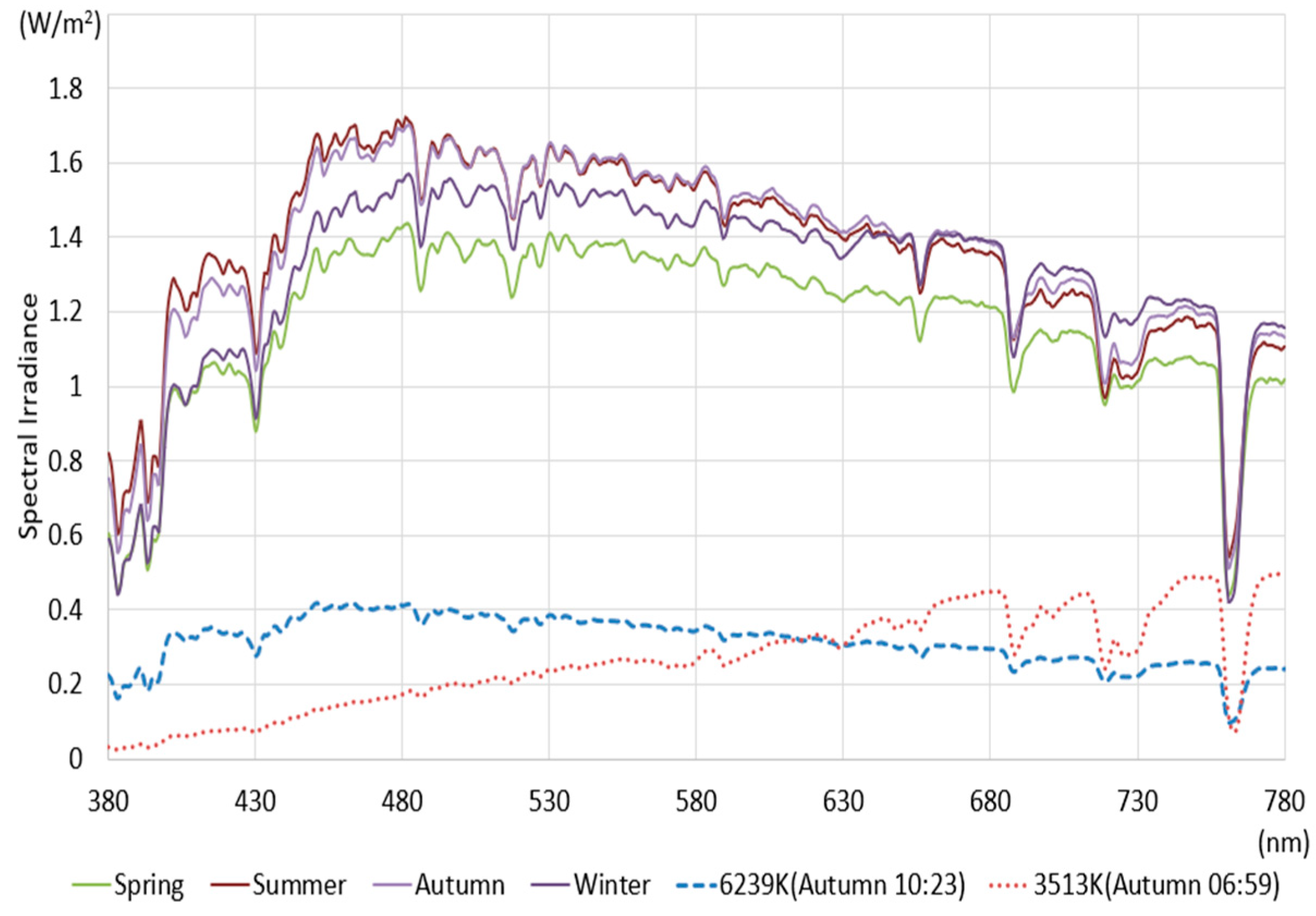 | Spring | Summer | Autumn | Winter | Autumn (6239 K) | Autumn (3513 K) | Light0 | Light1 | Light2 | Light2 (Control 3500 K) | Light2 (Control 6200 K) | |