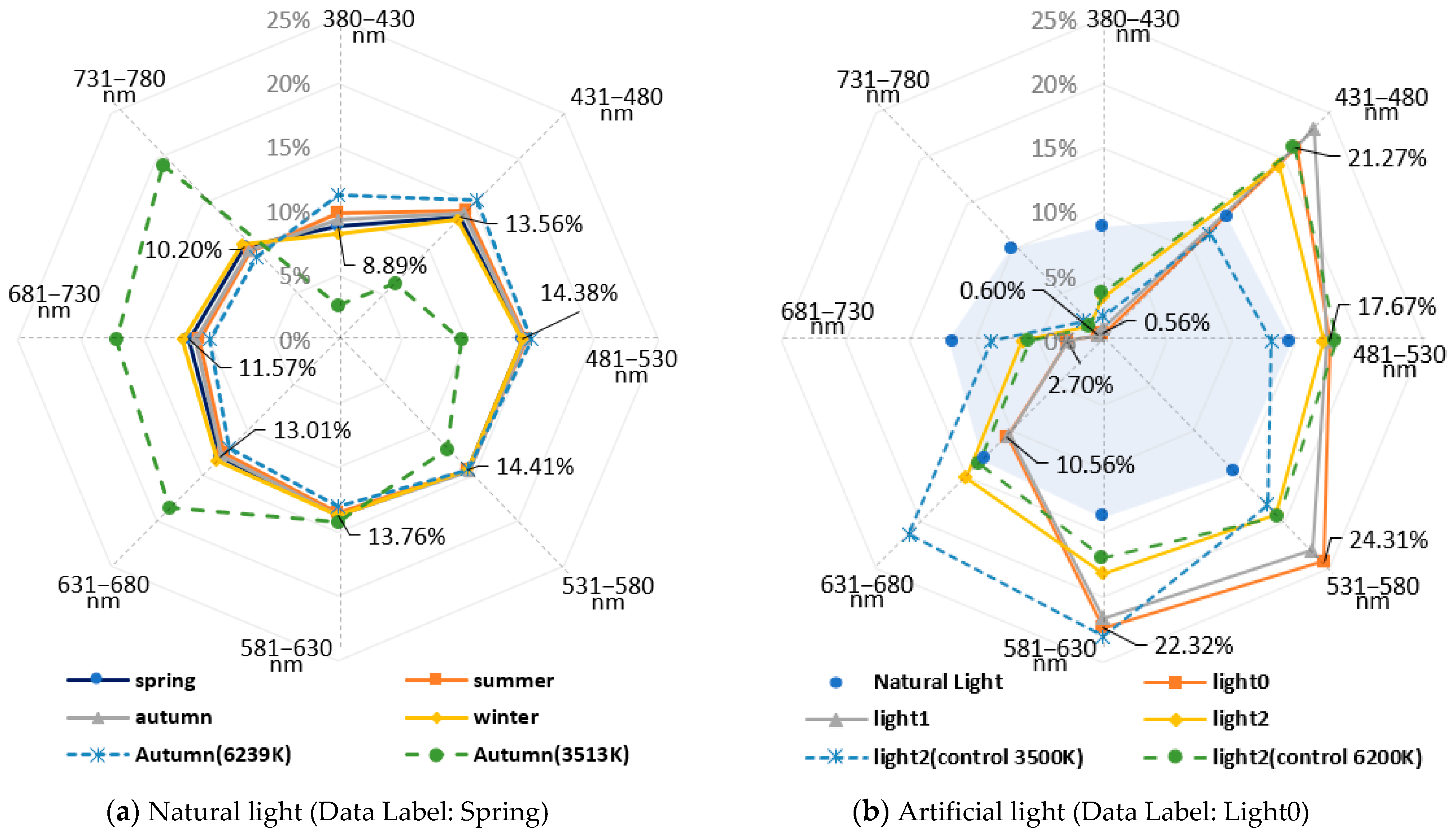 3.1. Spectral Ratio Optimization as per Natural Light Characteristics
