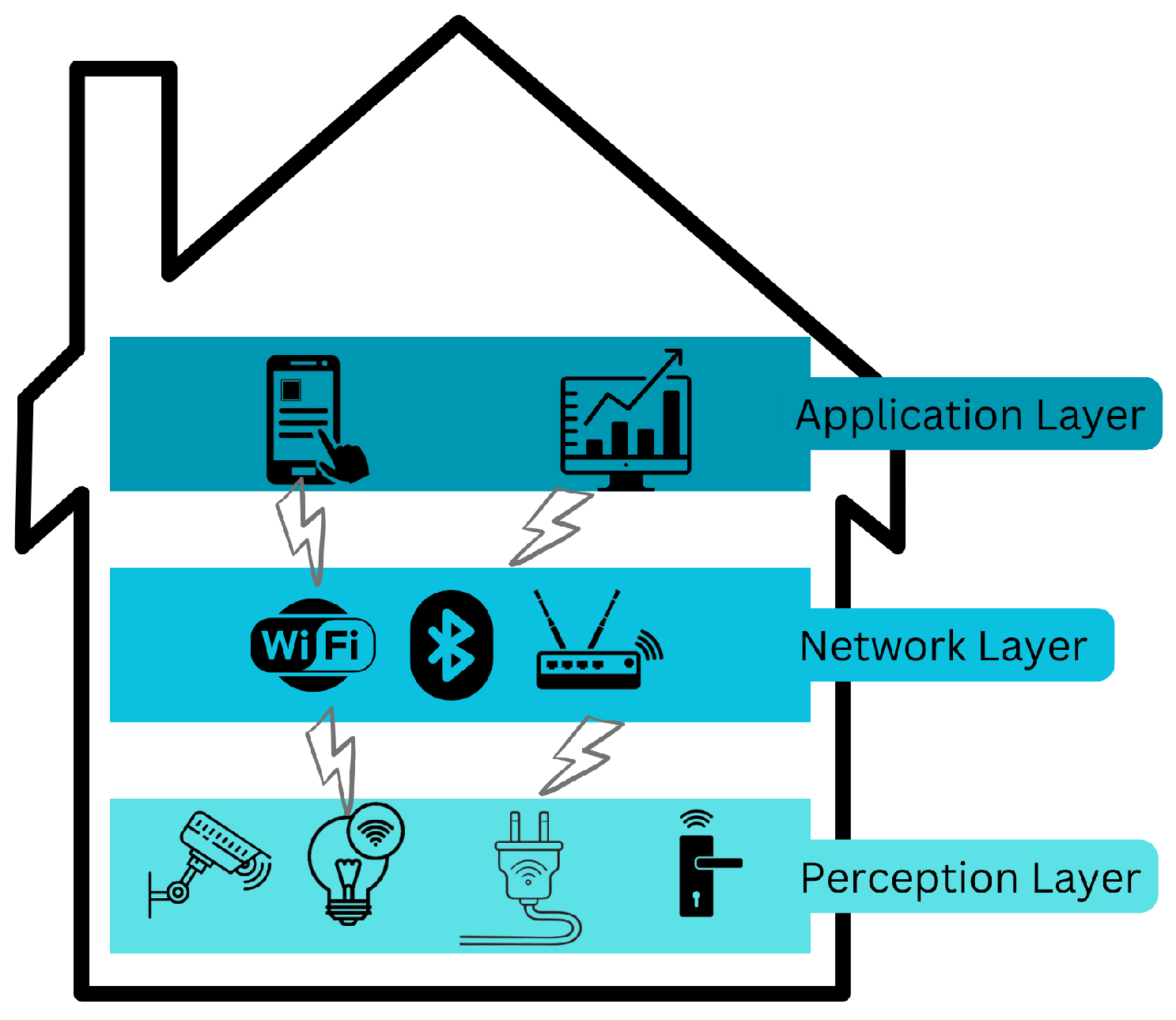 IoT in smart homes emphasizes on communication between individual nodes that collect and transmit sensitive data and control critical infrastructure. It functions on the three layers presented in