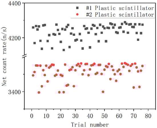 where C # 1 and C # 2 represent the average background count rates of plastic scintillators #1 and plastic scintillators #2, respectively.