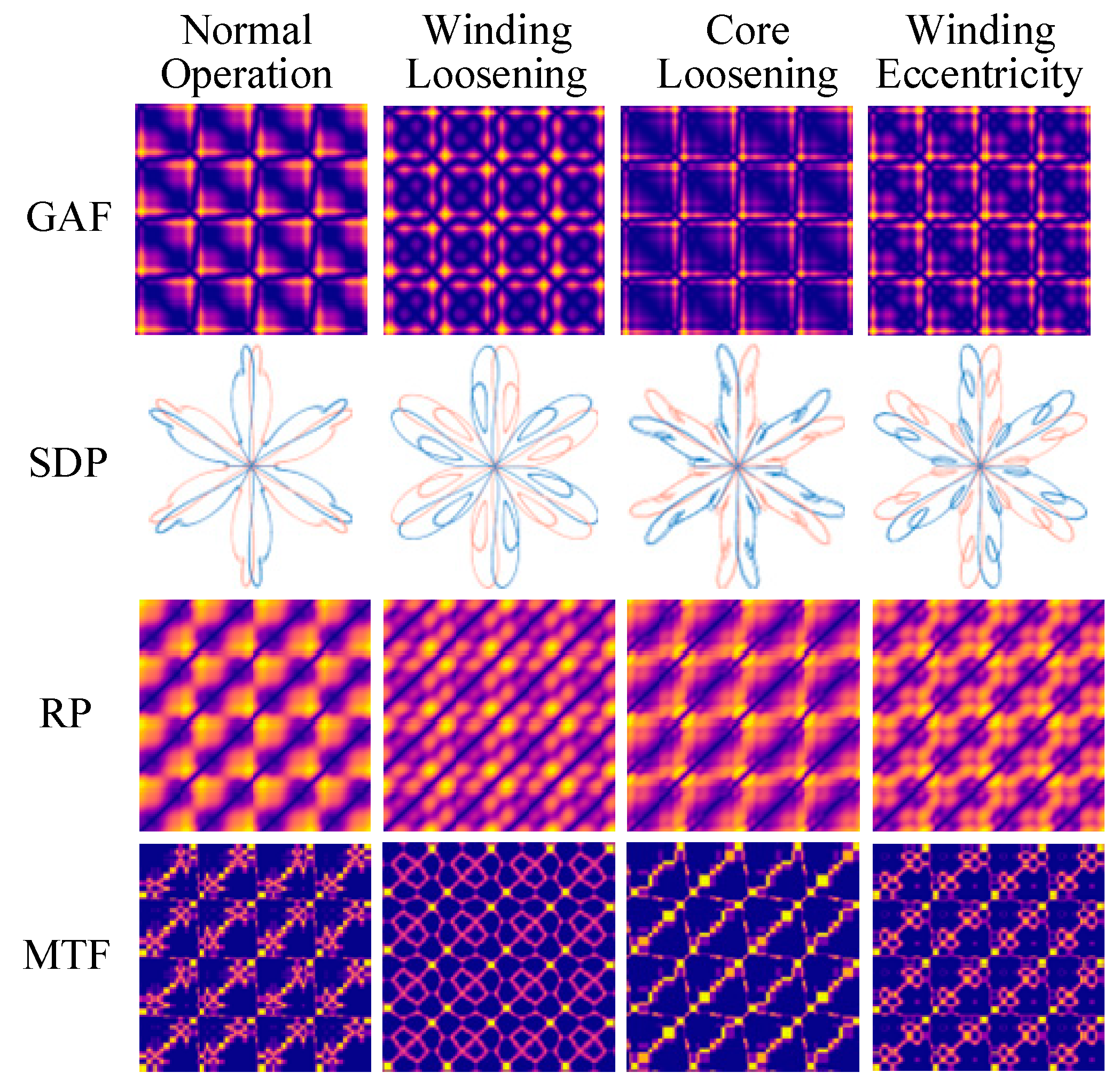 - Hong, K.; Jin, M.; Huang, H. Transformer winding fault diagnosis using vibration image and deep learning. IEEE Trans. Power Deliv. 2020, 36, 676–685. [Google Scholar] [CrossRef]