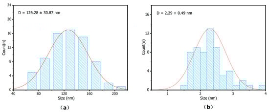The particle size of ZIF-8 was statistically analyzed from the SEM images, and that of AuNPs was analyzed from the TEM images. As shown in Figure 3, the diameter of ZIF-8 is 126.28 ± 30.87 nm, and the diameter of CS@AuNPs is 2.29 ± 0.49 nm.