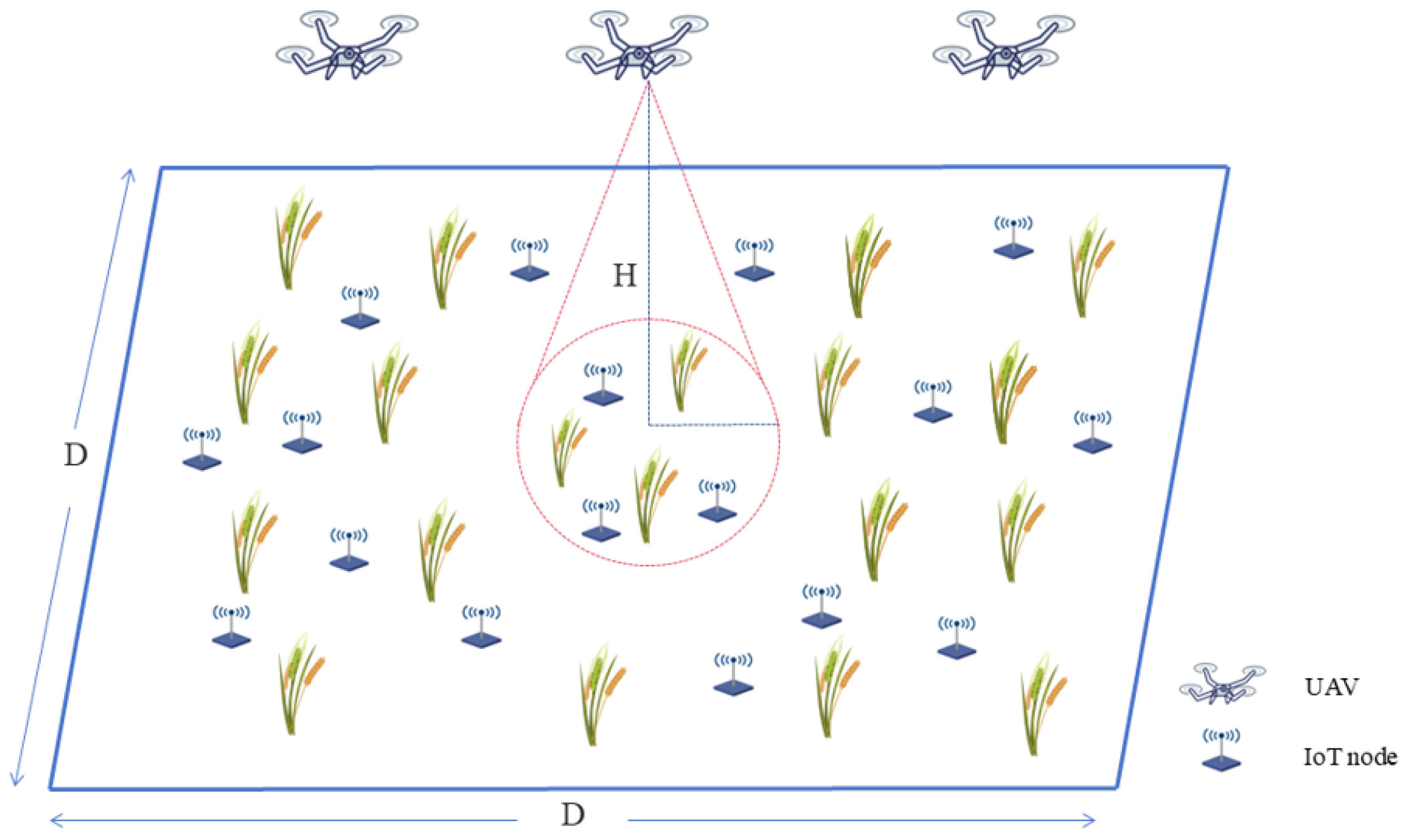 Building on the foregoing discussion, this paper addresses the challenge of cooperative data collection from IoT sensor nodes using a multi-UAV system for agricultural applications. The primary contributions of this work are as follows: