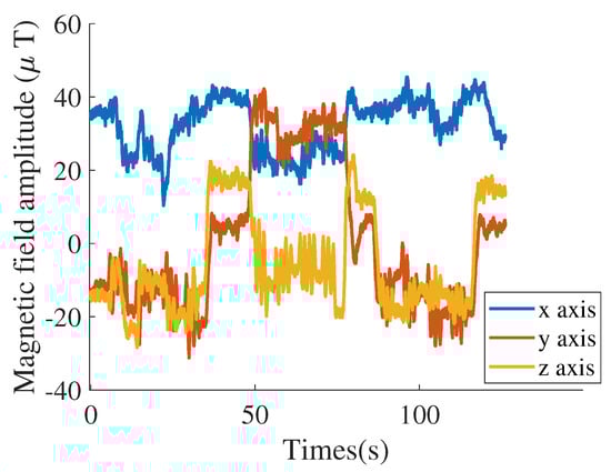 21. Le Grand, E.; Thrun, S. 3-axis magnetic field mapping and fusion for indoor localization. In Proceedings of the 2012 IEEE International Conference on Multisensor Fusion and Integration for Intelligent Systems (MFI), Hamburg, Germany, 13–15 September 2012; pp. 358–364. [Google Scholar]