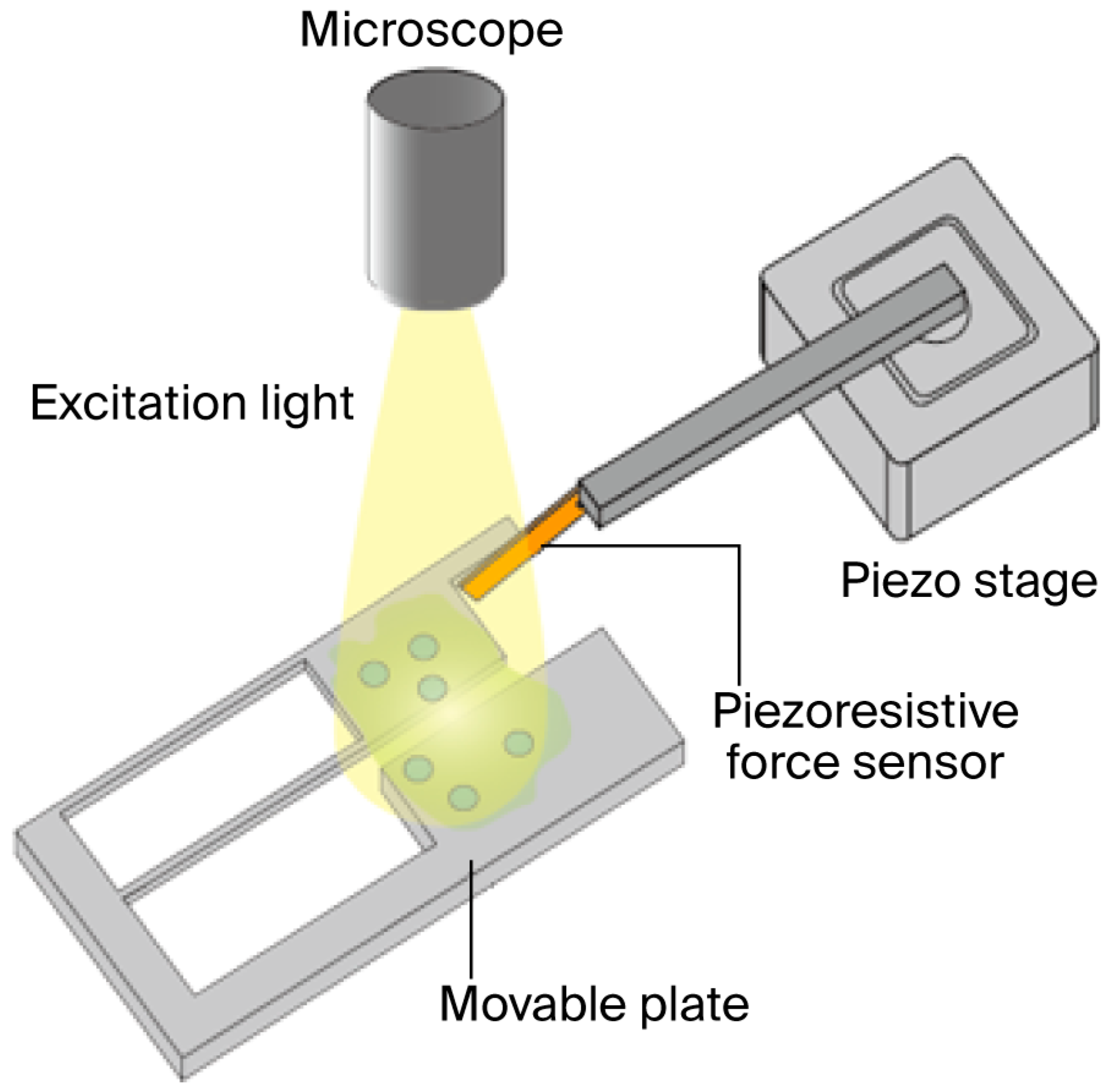 In this study, we present a cell measurement system that combines a MEMS-based piezoresistive force sensor for real-time cardiomyocyte contraction measurement with fluorescence imaging of the Ca2+ concentration distribution. By using the MEMS sensor for force acquisition, the microscopy setup can be fully dedicated to the fluorescence observation, maximizing the temporal and spatial resolution. Myofibril contraction is known to result from transient increases in Ca2+ concentration, and understanding the molecular mechanisms underlying this process requires a dynamic correlation of contraction and Ca2+ signaling in cardiac tissue [19,20,21,22,23]. In particular, a point of significant interest is distinguishing whether changes in contractile force arise from Ca2+ concentration or myofilament sensitivity. Therefore, simultaneous, high-resolution measurement of Ca2+ dynamics and contractile force at the single-cell and multi-cellular level is essential for investigating cardiomyocyte physiological function.