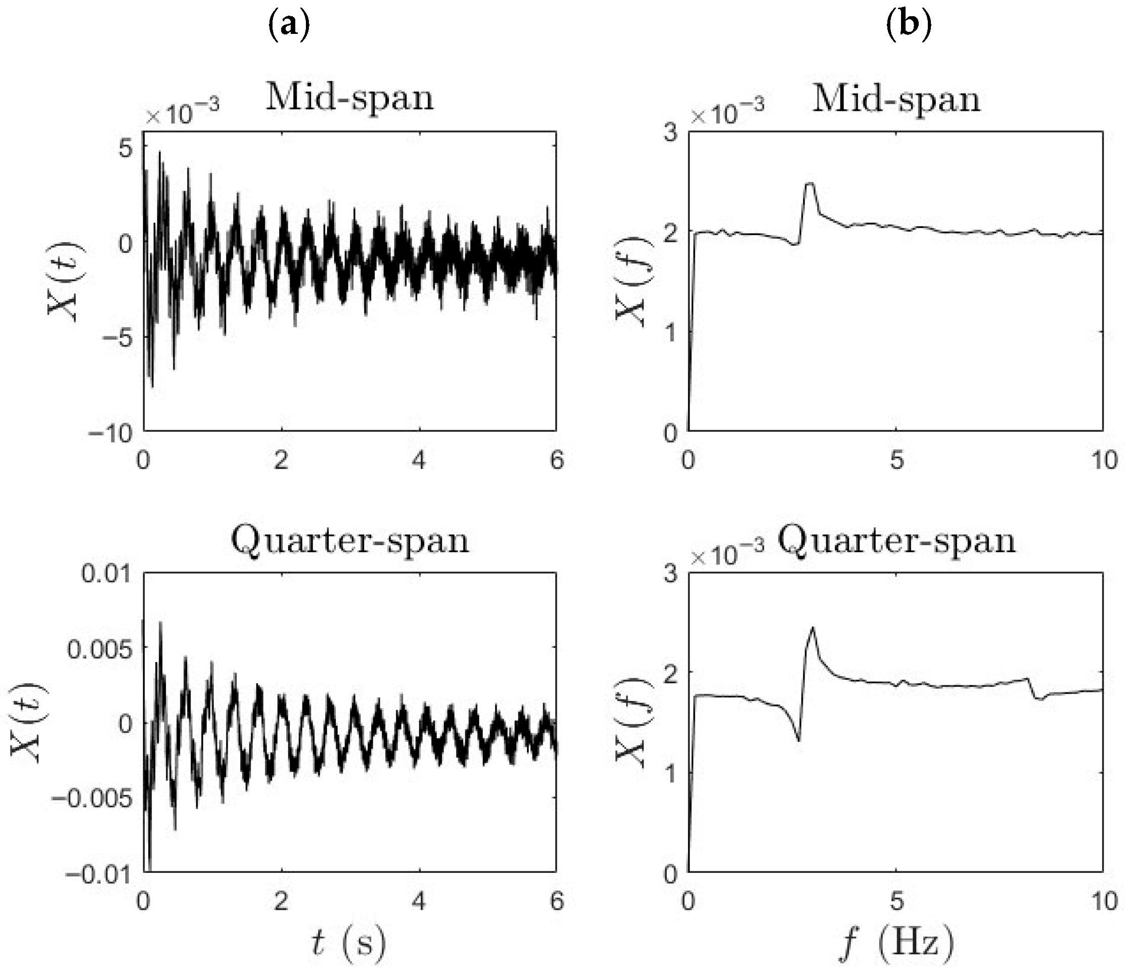 | Mid-Span (Hz)/(%) | Quarter-Span (Hz)/(%) | Bicycle (Hz)/(%) | ||
