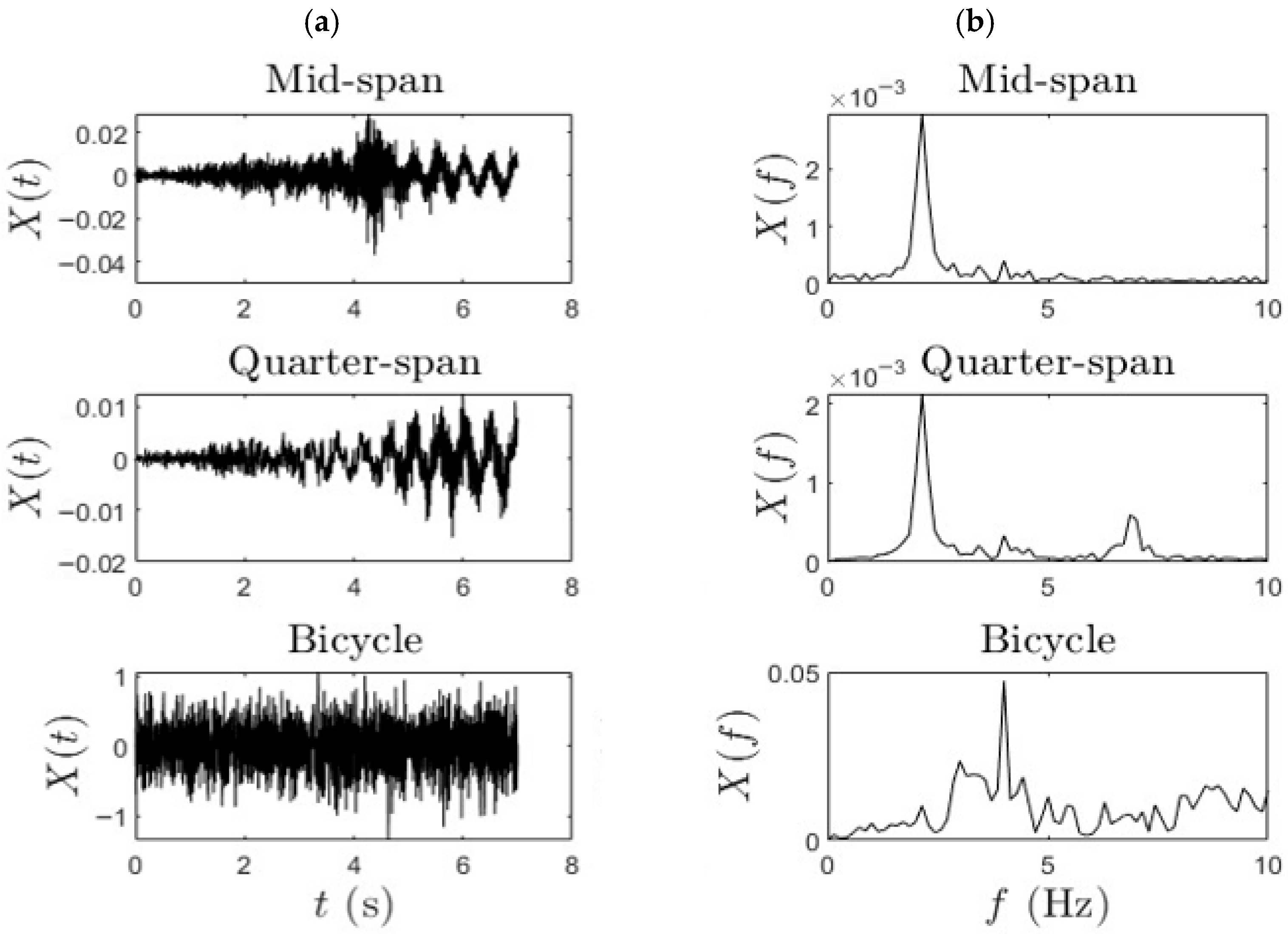 | Mid-Span (Hz)/% | Quarter-Span (Hz)/% | Bicycle (Hz)/% | ||