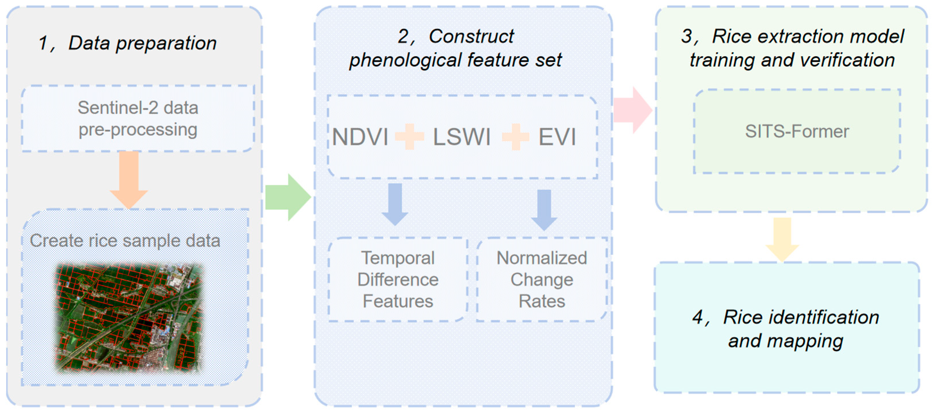 12]. Current rice identification methods primarily fall into three categories: traditional approaches based on vegetation index thresholds [