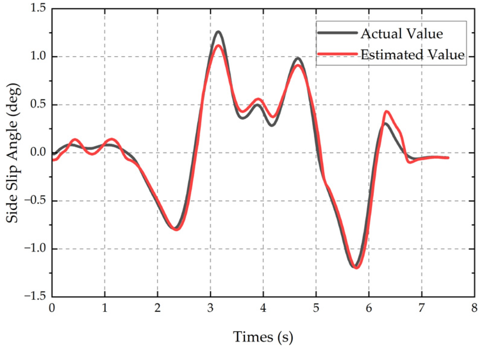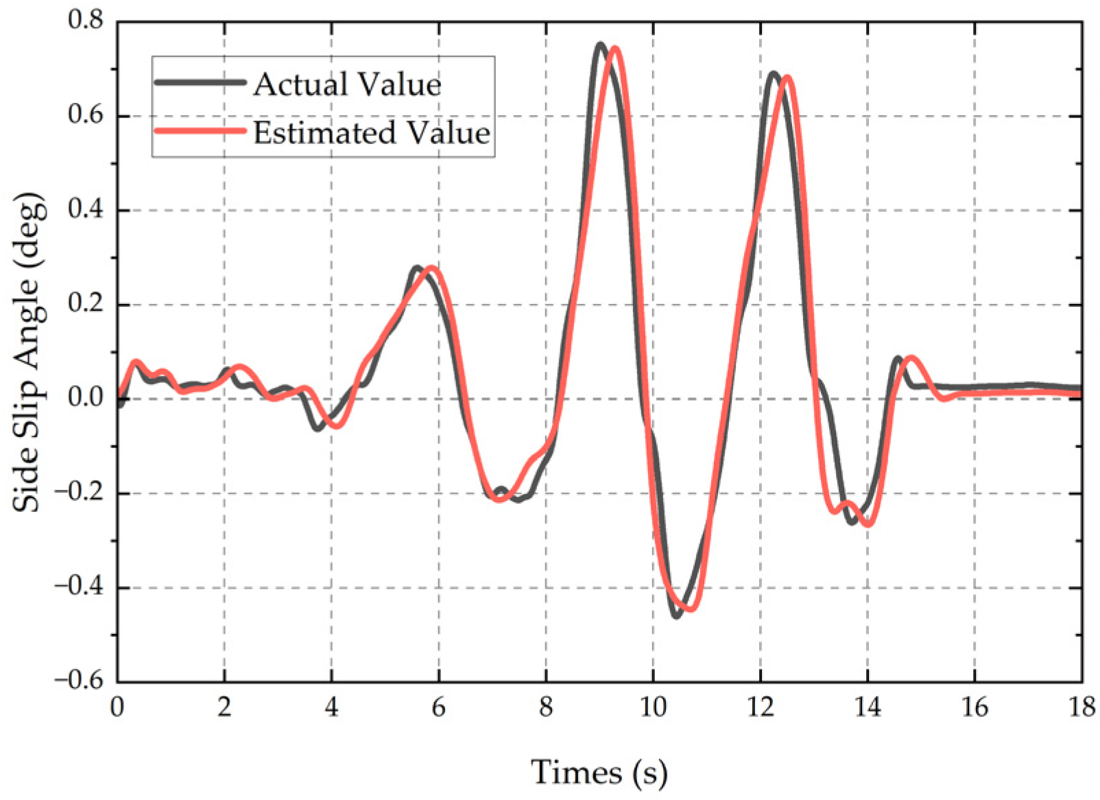 | Extended Kalman Filter (EKF) | Linearizes nonlinear systems with simple calculation; stable performance under small sideslip angle conditions; and accuracy meets basic control needs | Only applicable to linear/small sideslip angle conditions; large error in nonlinear processing | |