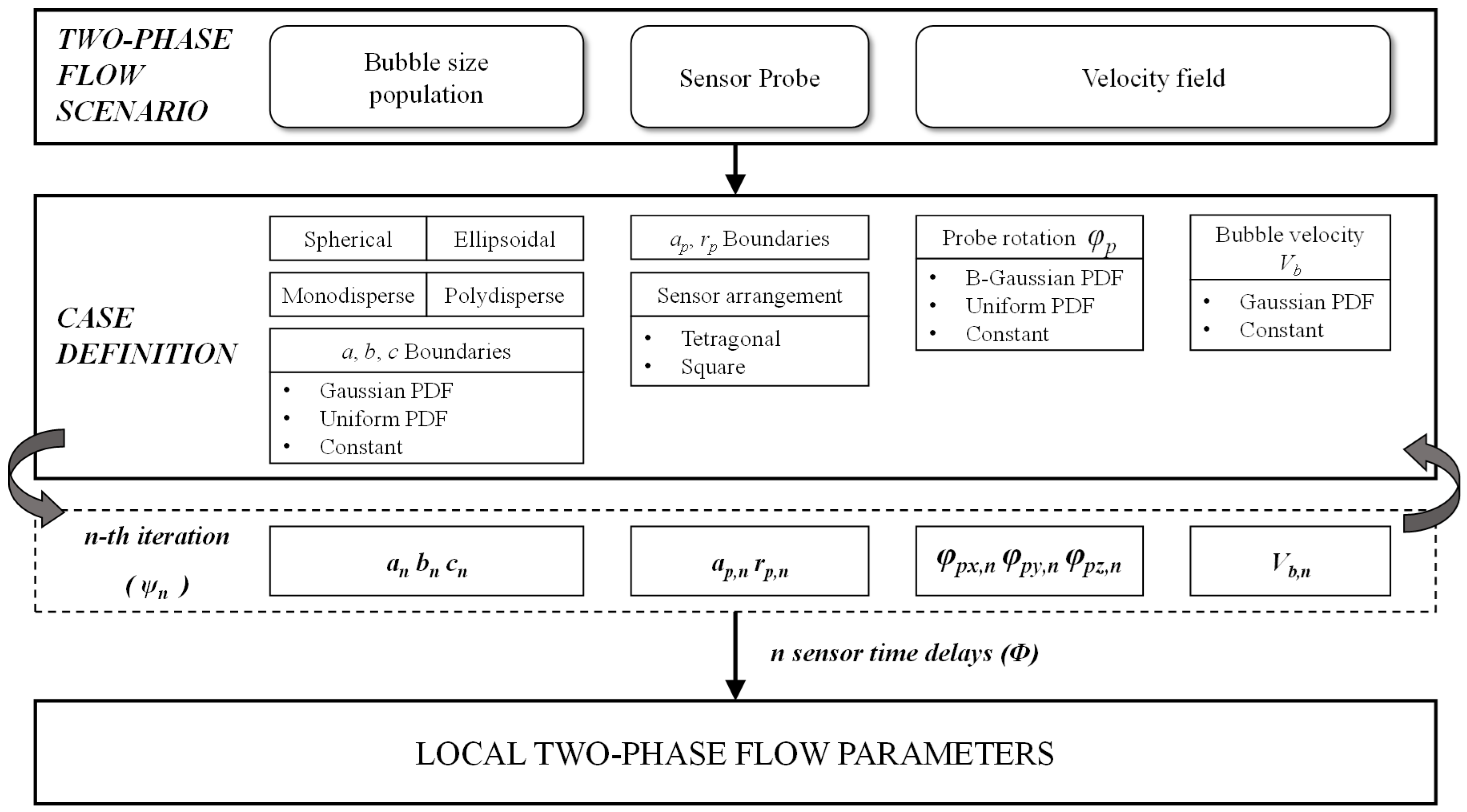 - Le Corre, J.M.; Ishii, M. Numerical evaluation and correction method for multi-sensor probe measurement techniques in two-phase bubbly flow. Nucl. Eng. Des. 2002, 216, 221–238. [Google Scholar] [CrossRef]